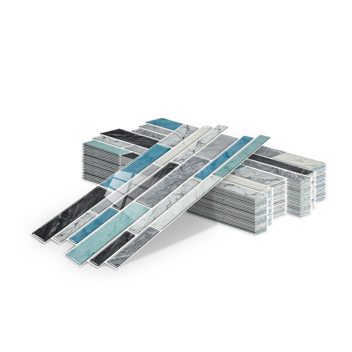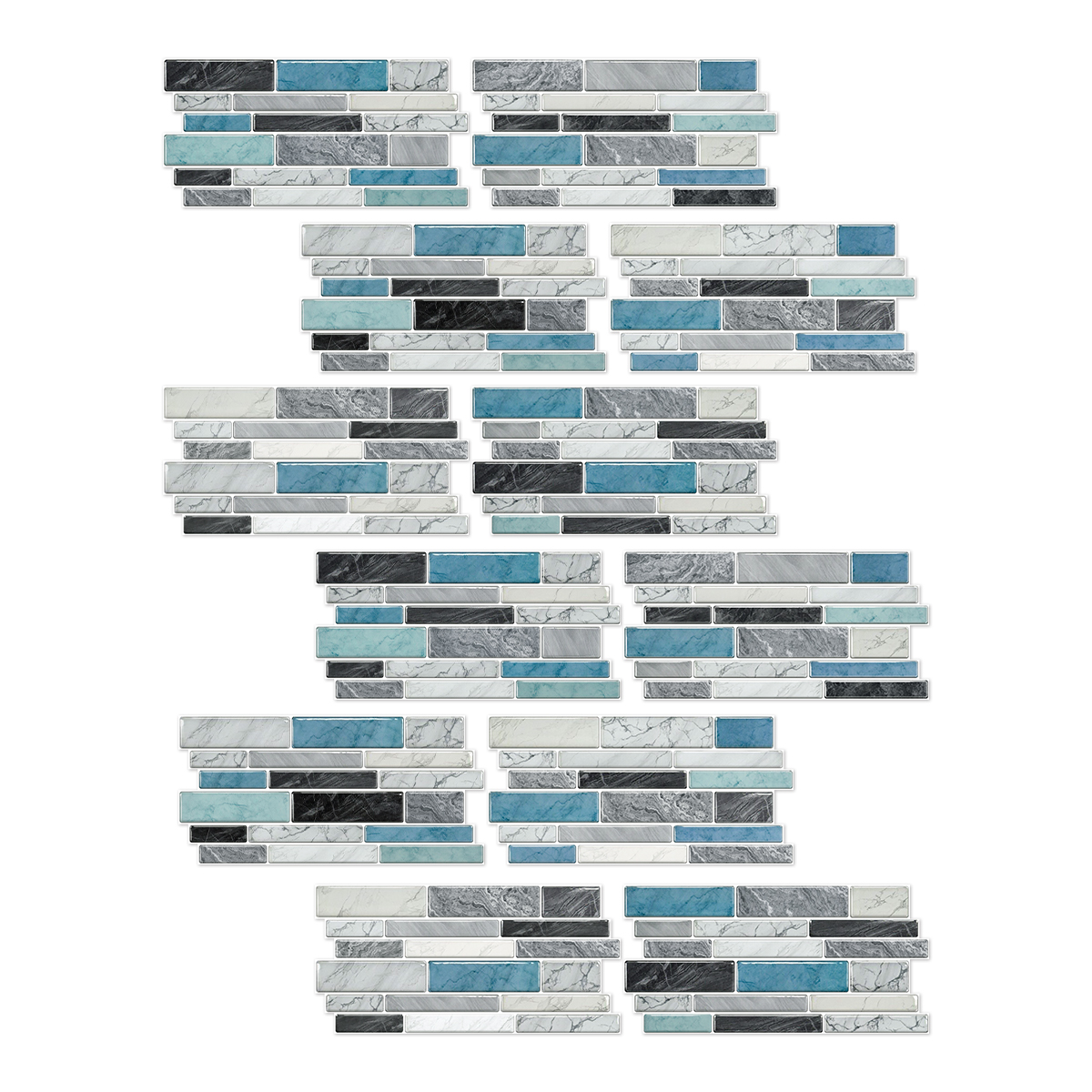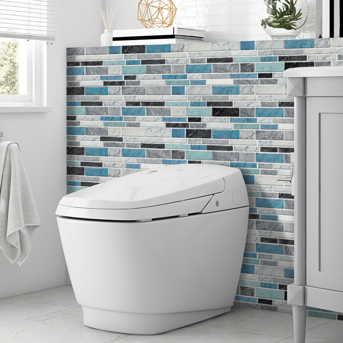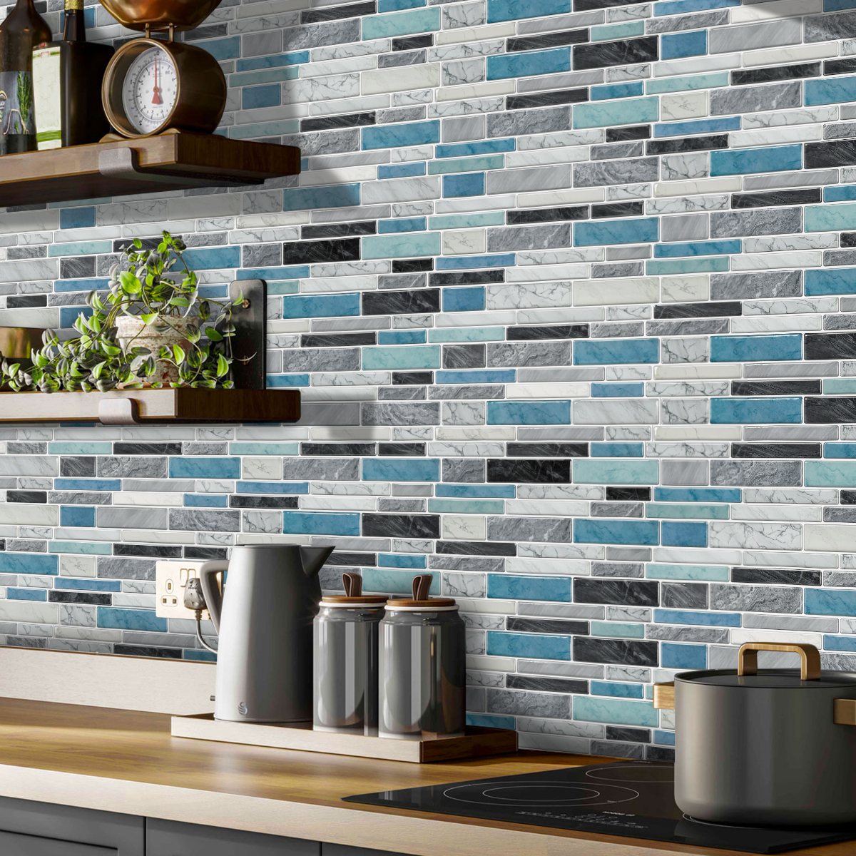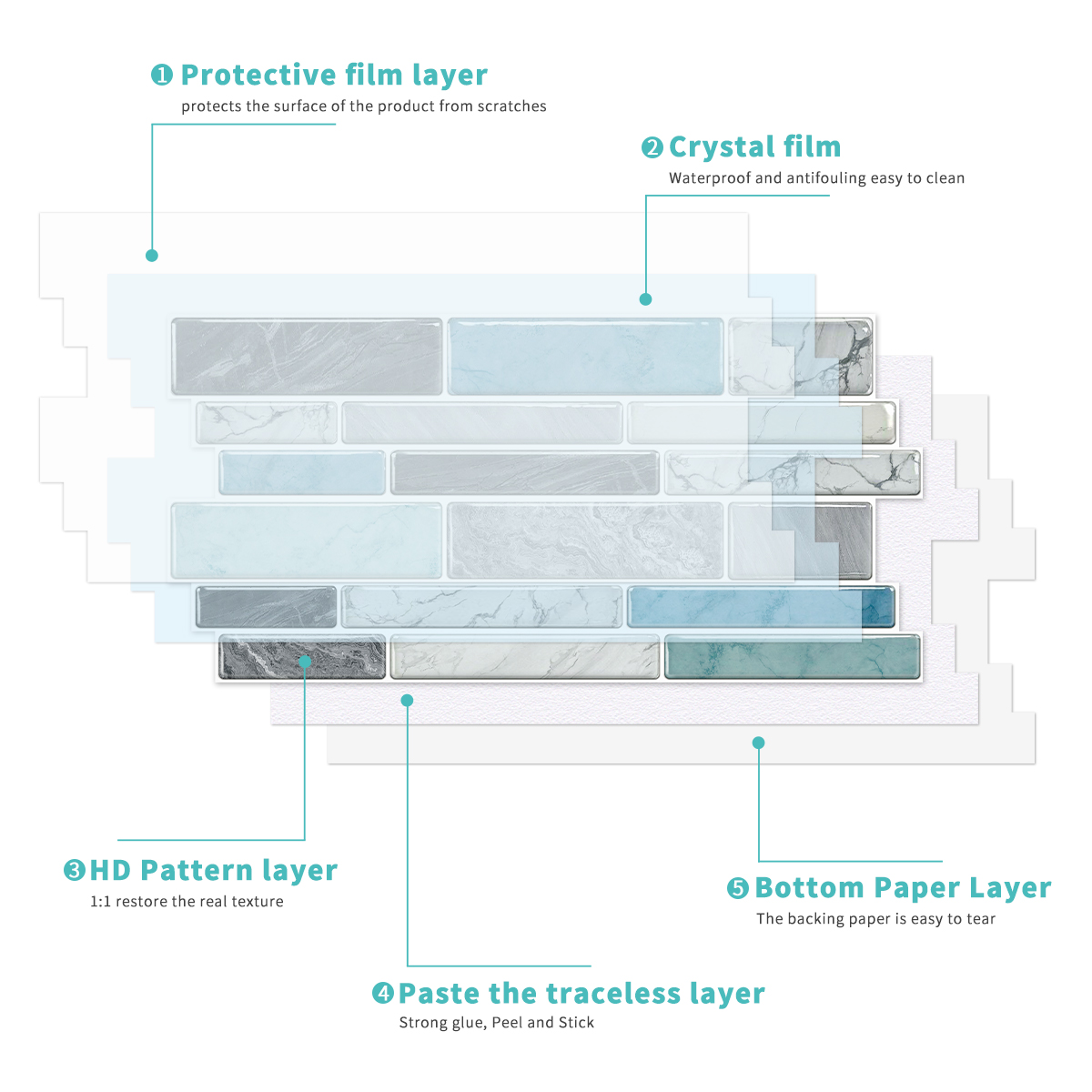 Imitation Tile Marble Effect Waterproof And Oil-Resistant Peel-Off Tile Stickers Blue Green Kitchen Bathroom Laundry Room Wall Decor