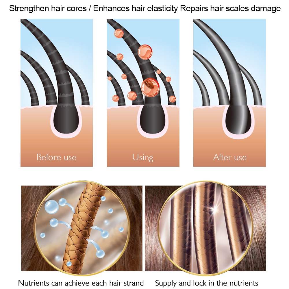 Efficacy: Strengthen hair quality, drooping smooth, scalp oil control, fragile split care, dyeing and ironing damage care, improve frizz