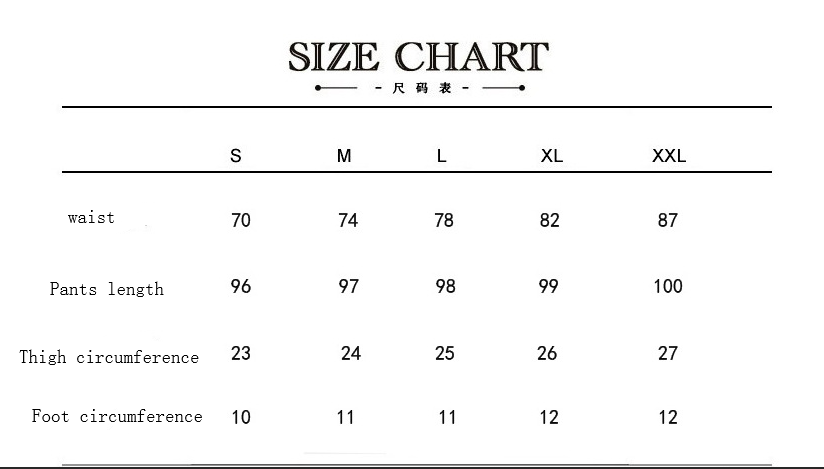 Size | Waistline | Thigh circumference | Pants length | Trouser opening |