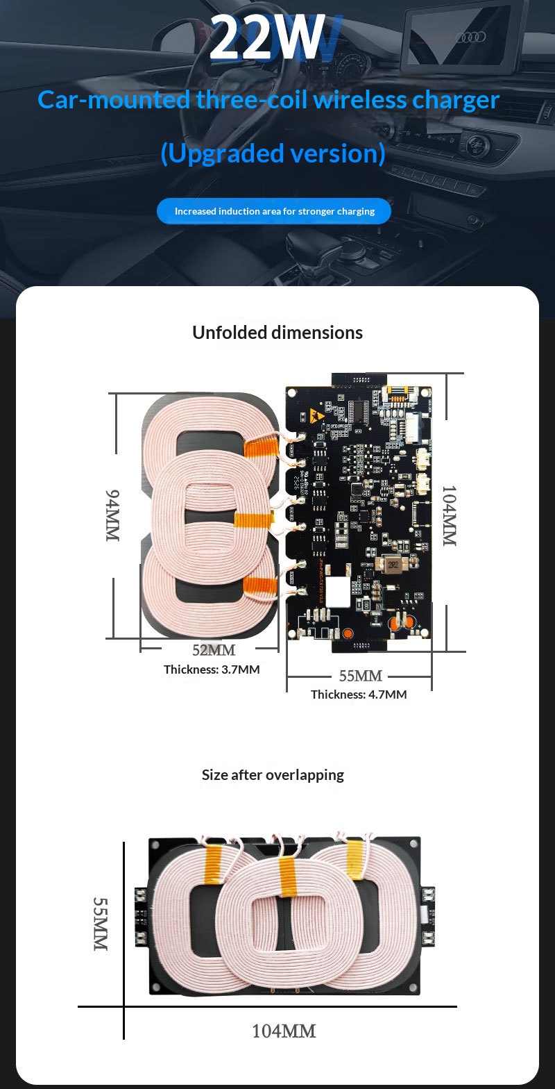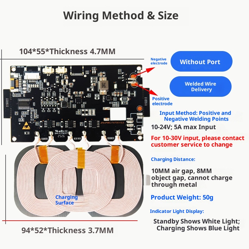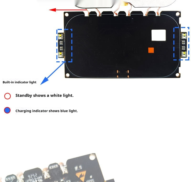 Transmission Distance: 0-8mm through non-metallic materials; 0-10mm through air (metal materials block charging).