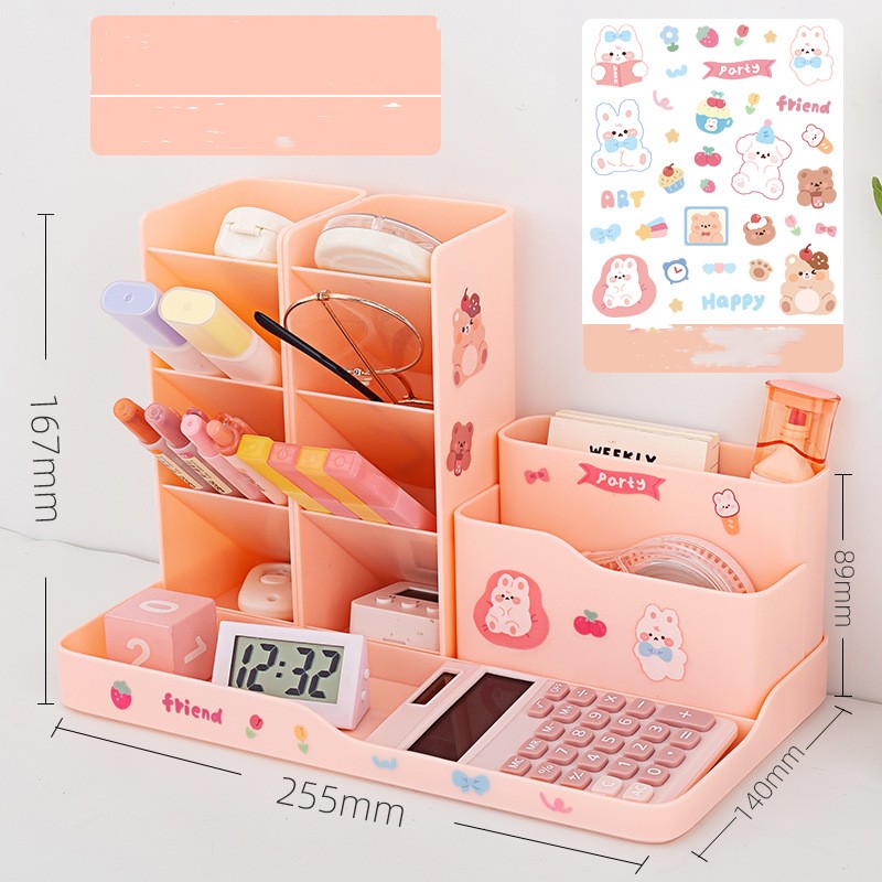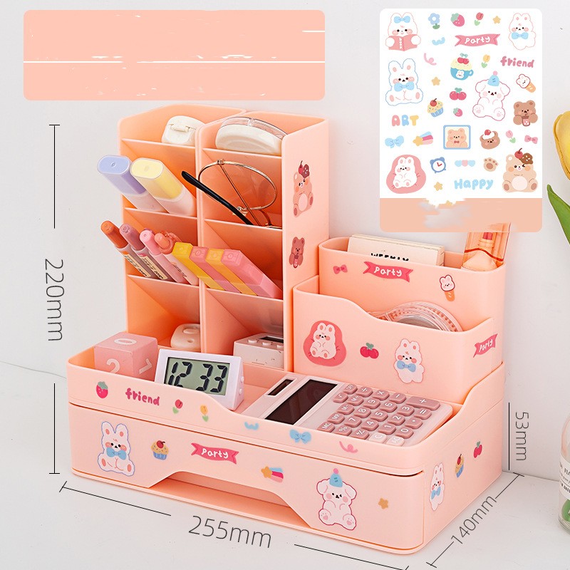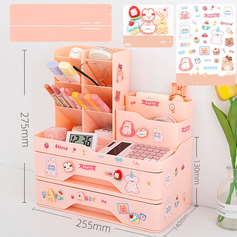 Set1: Pink pencil holder +1 layer drawer group to send stickers,