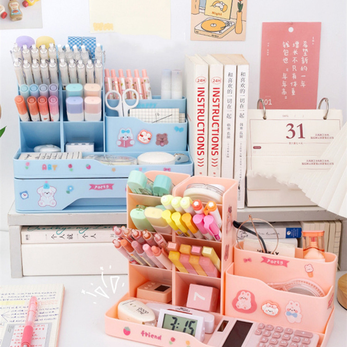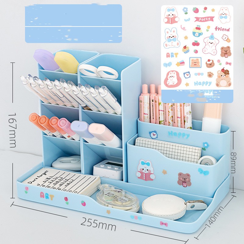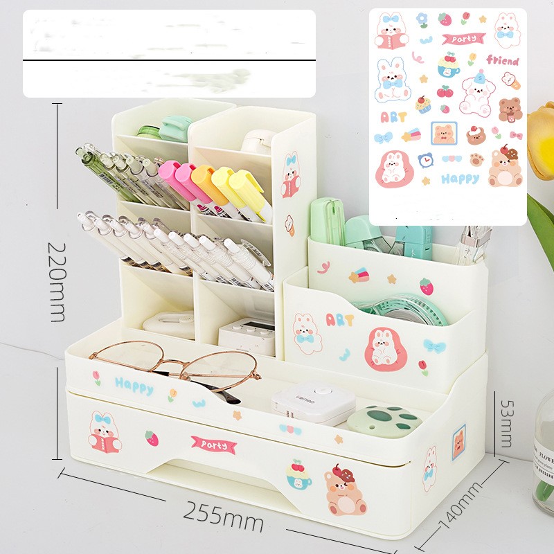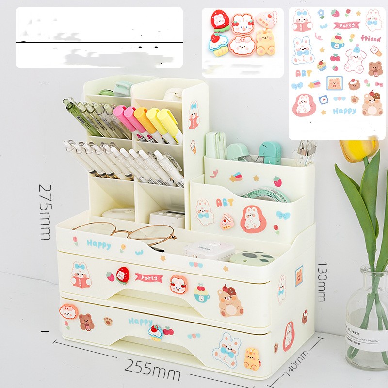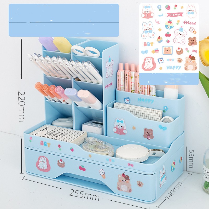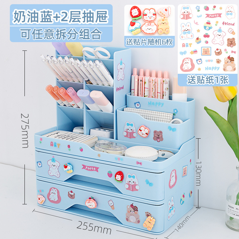 Specification:Pink pen holder +1 layer drawer group send stickers, white pen holder +1 layer drawer group send stickers, blue pen holder +1 layer drawer group send stickers, pink pen holder +2 layer drawer group send stickers + stickers, white pen holder +2 layer drawer group send stickers + stickers, blue pen holder +2 layer drawer group send stickers + stickers, pink combination pen holder send stickers, white combination pen holder send stickers, blue combination pen holder send stickers sticker