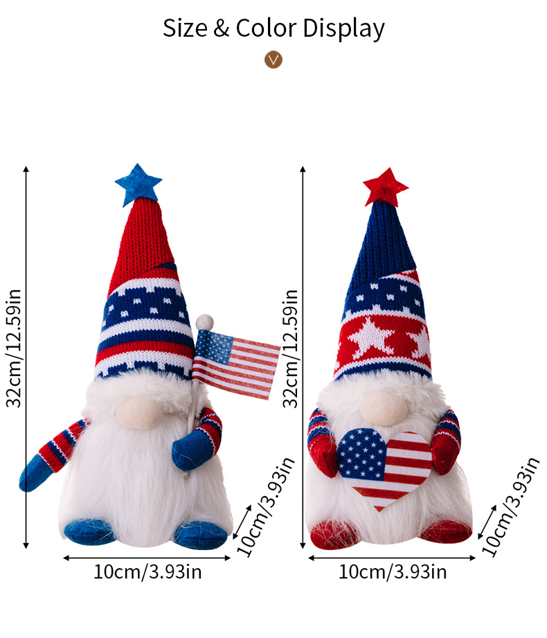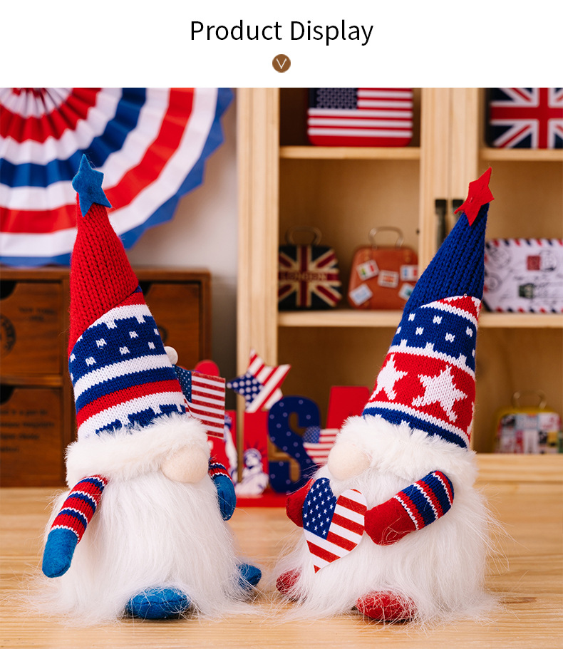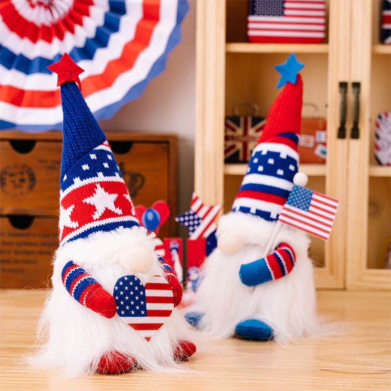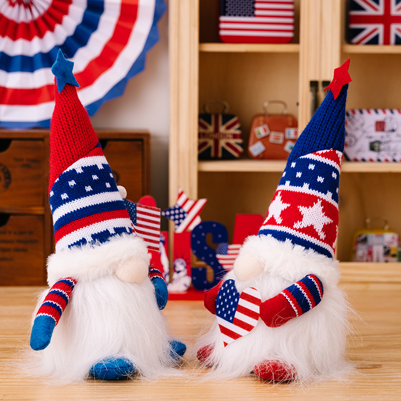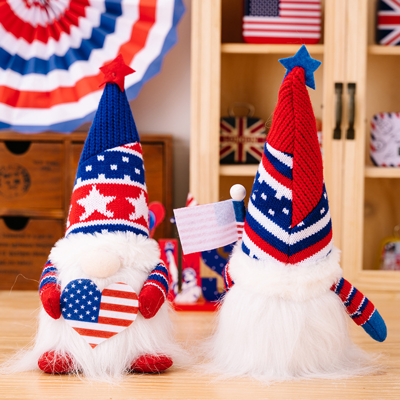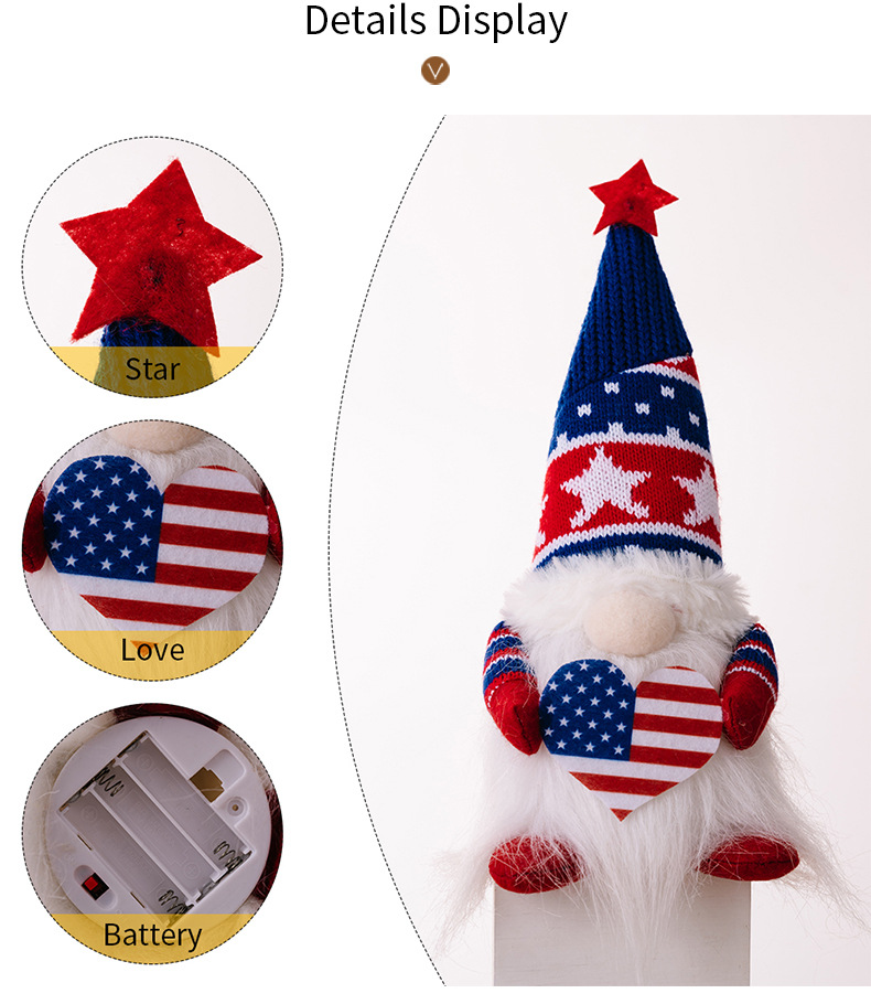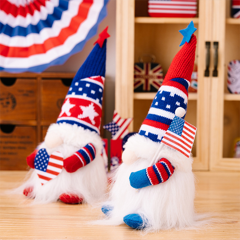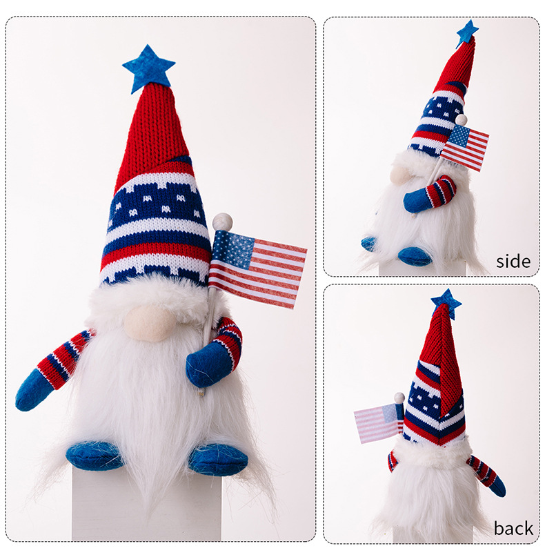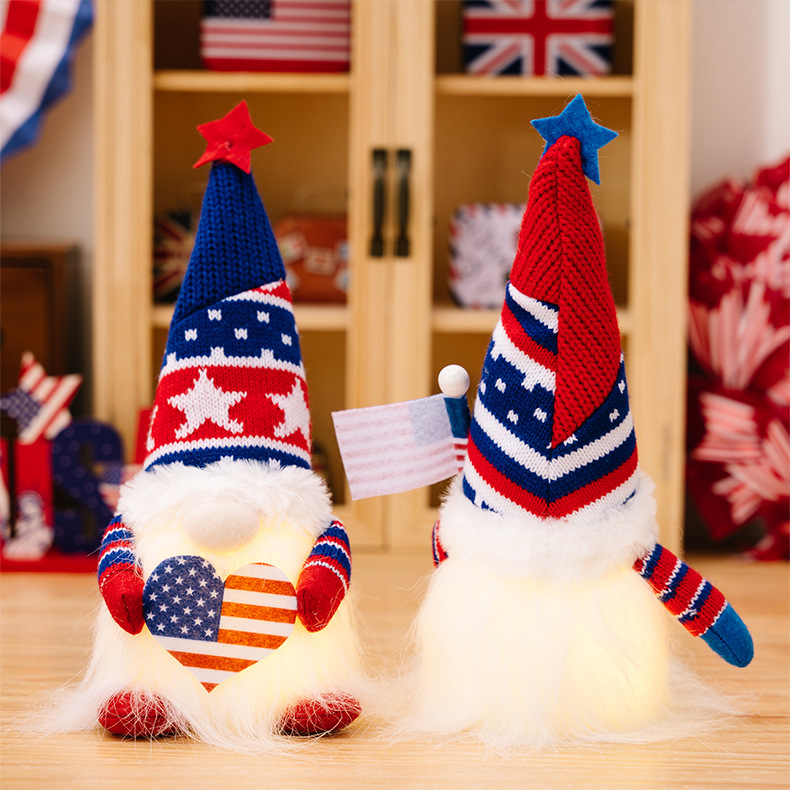 Size: Independence Day knitted hat doll with lights to raise the national flag, Independence Day knitted hat doll with lights to love
