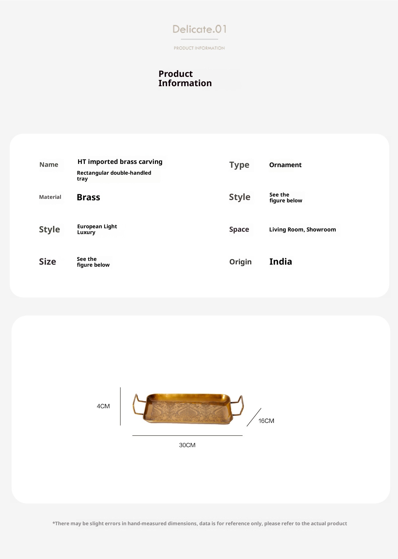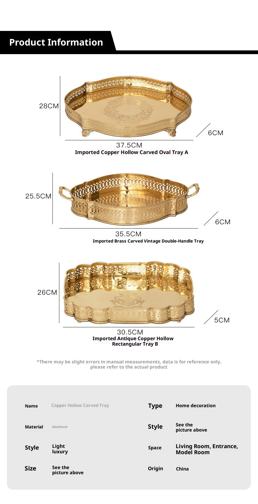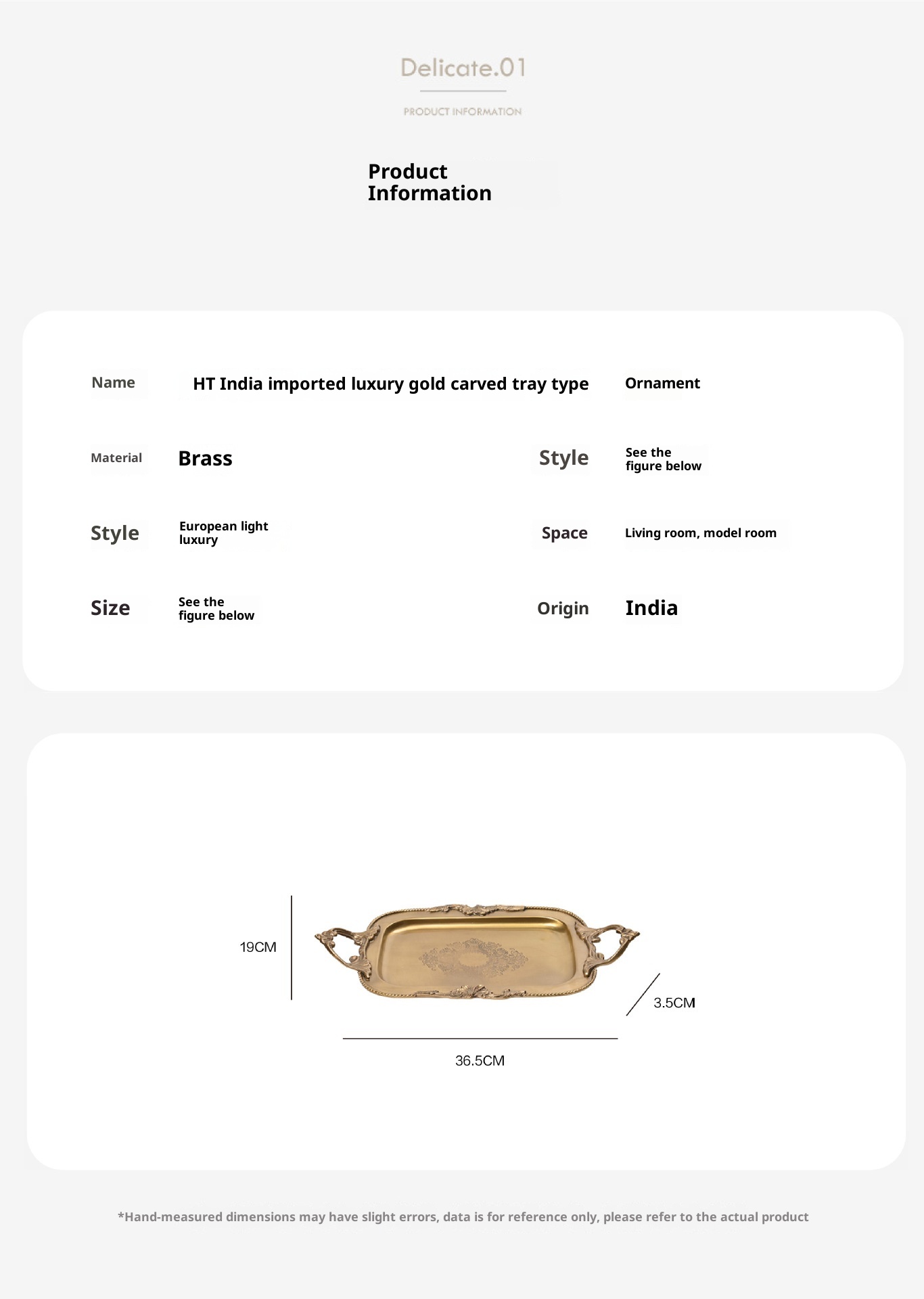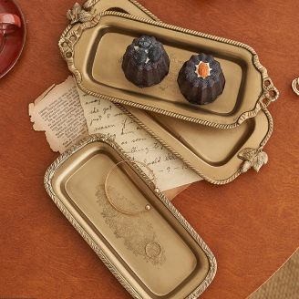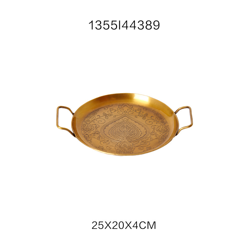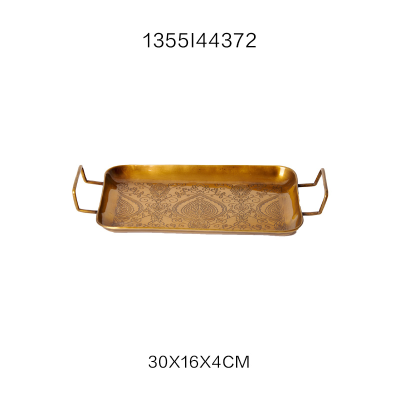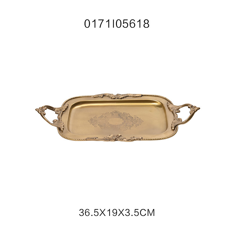 Style8:HT India imported light luxury gold carving serving tray