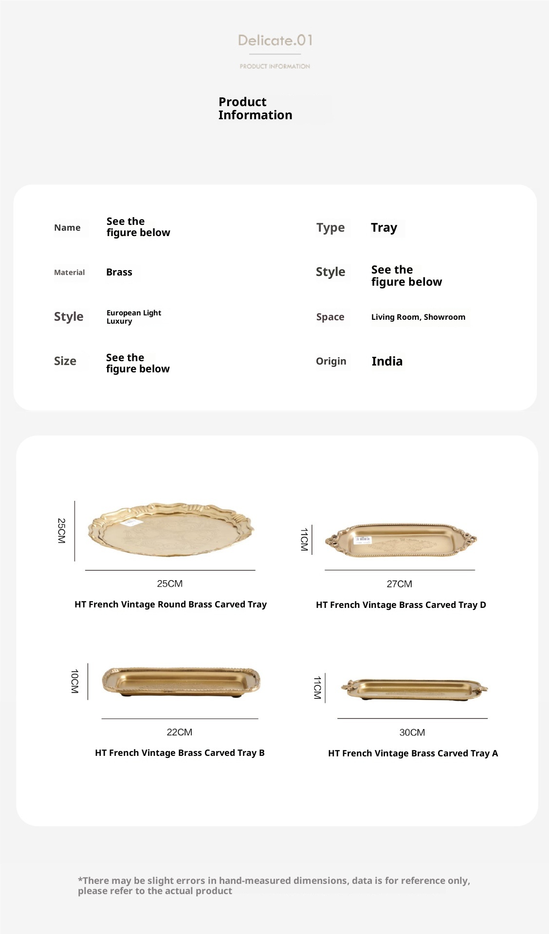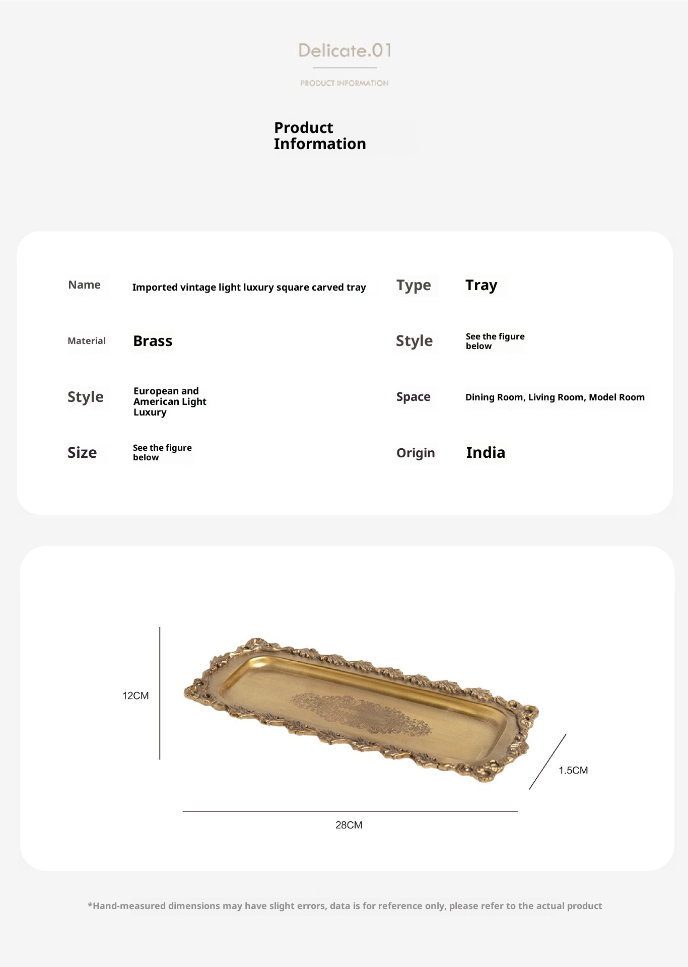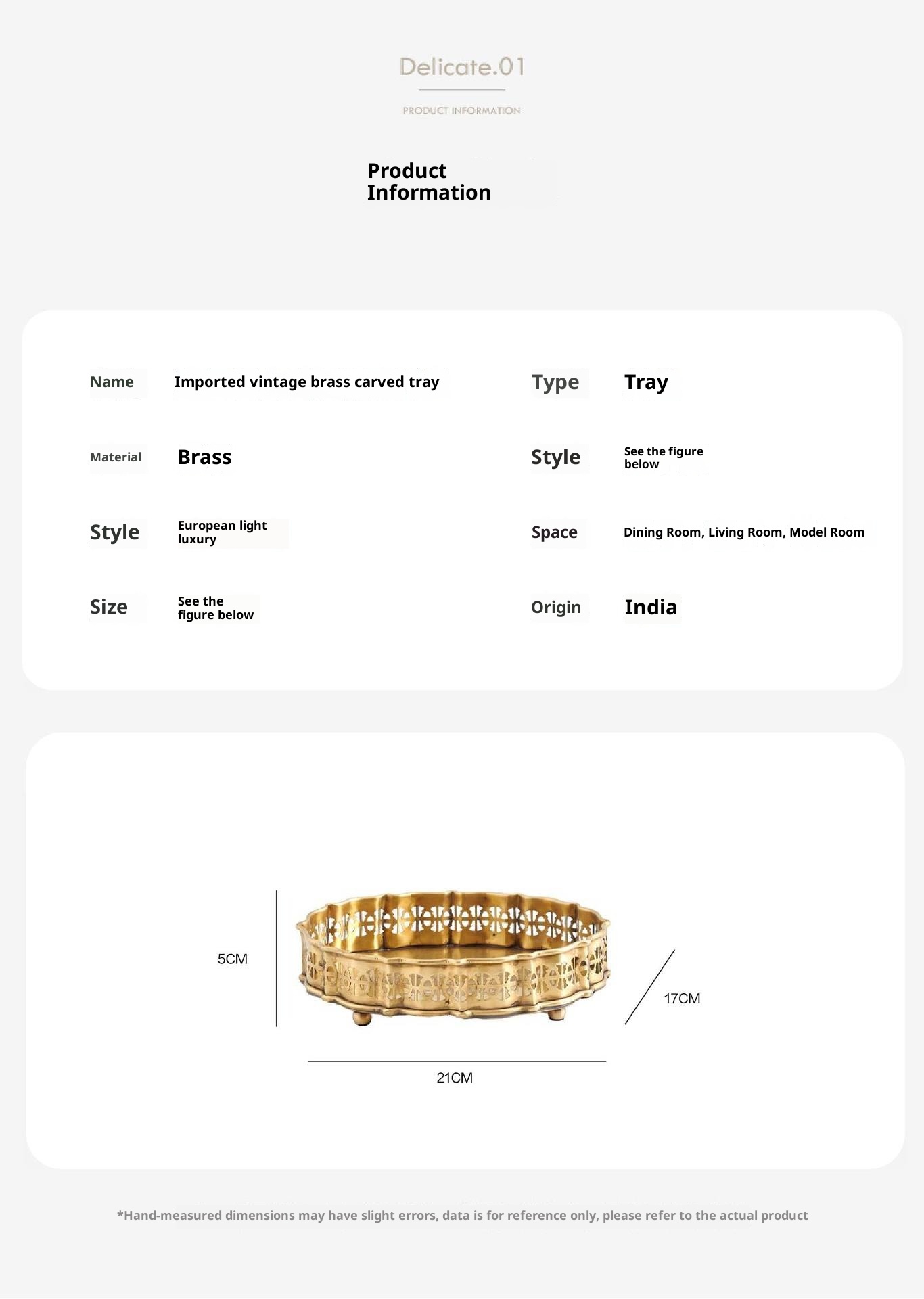 Style3:HT French retro brass carved tray dimension