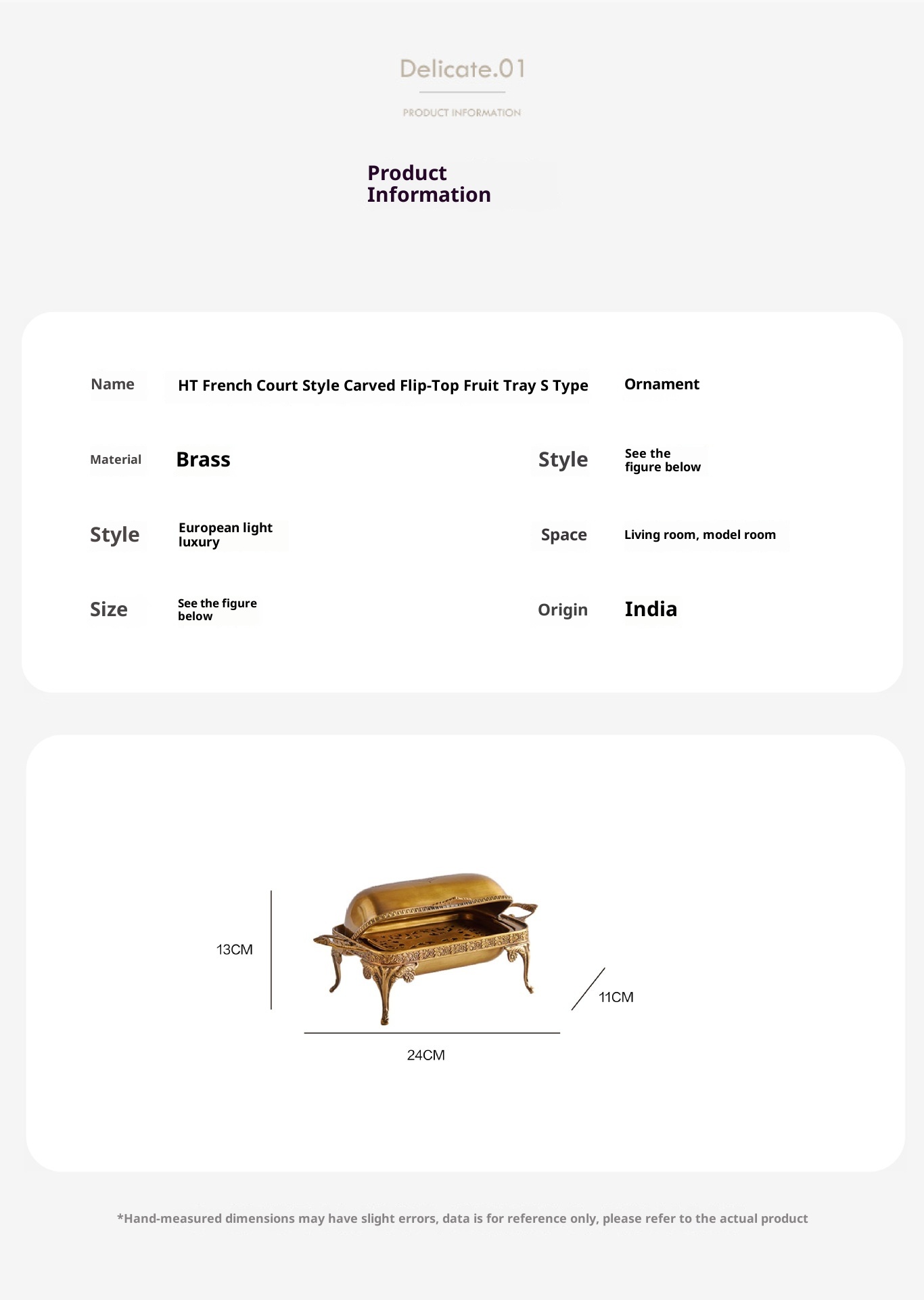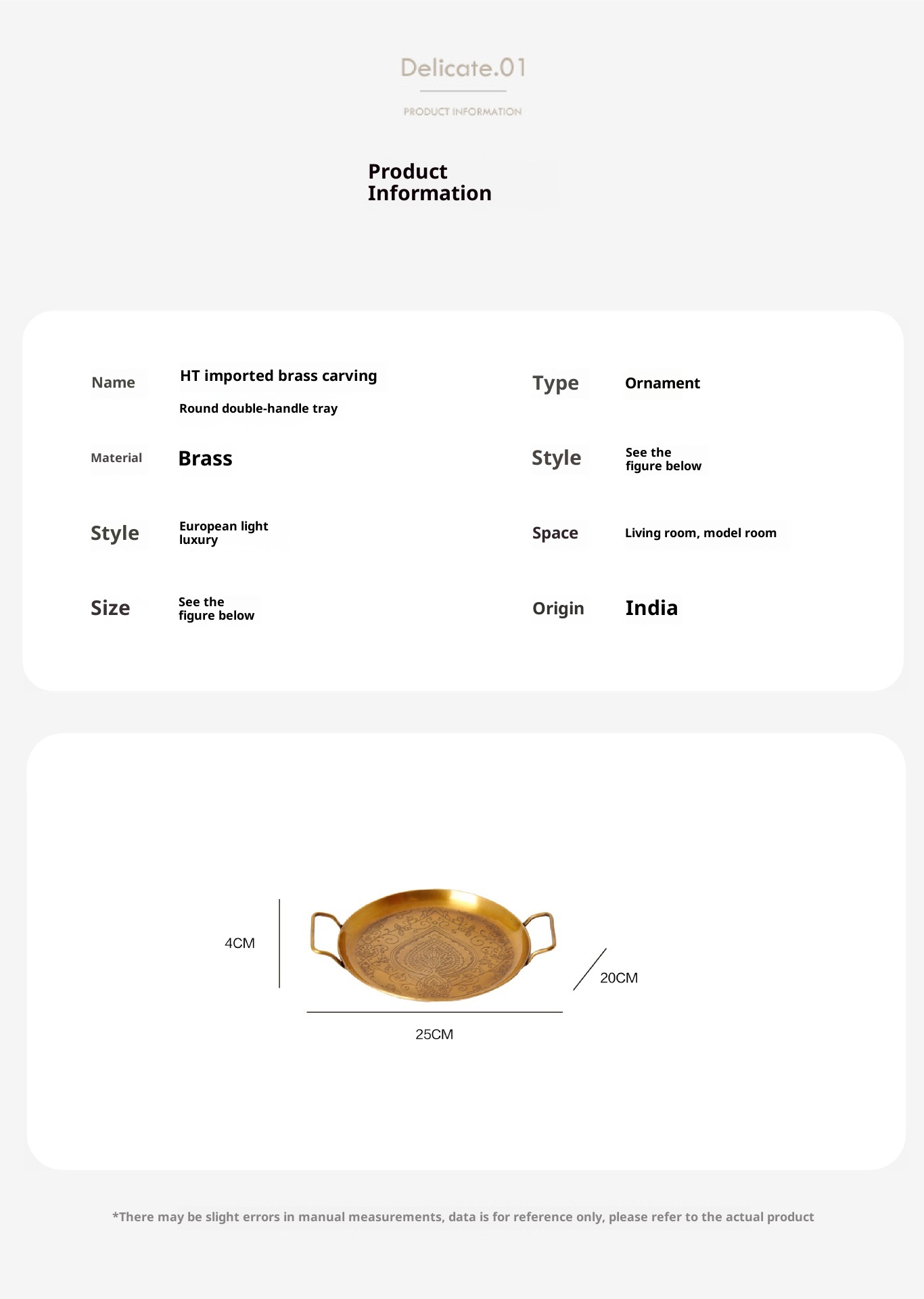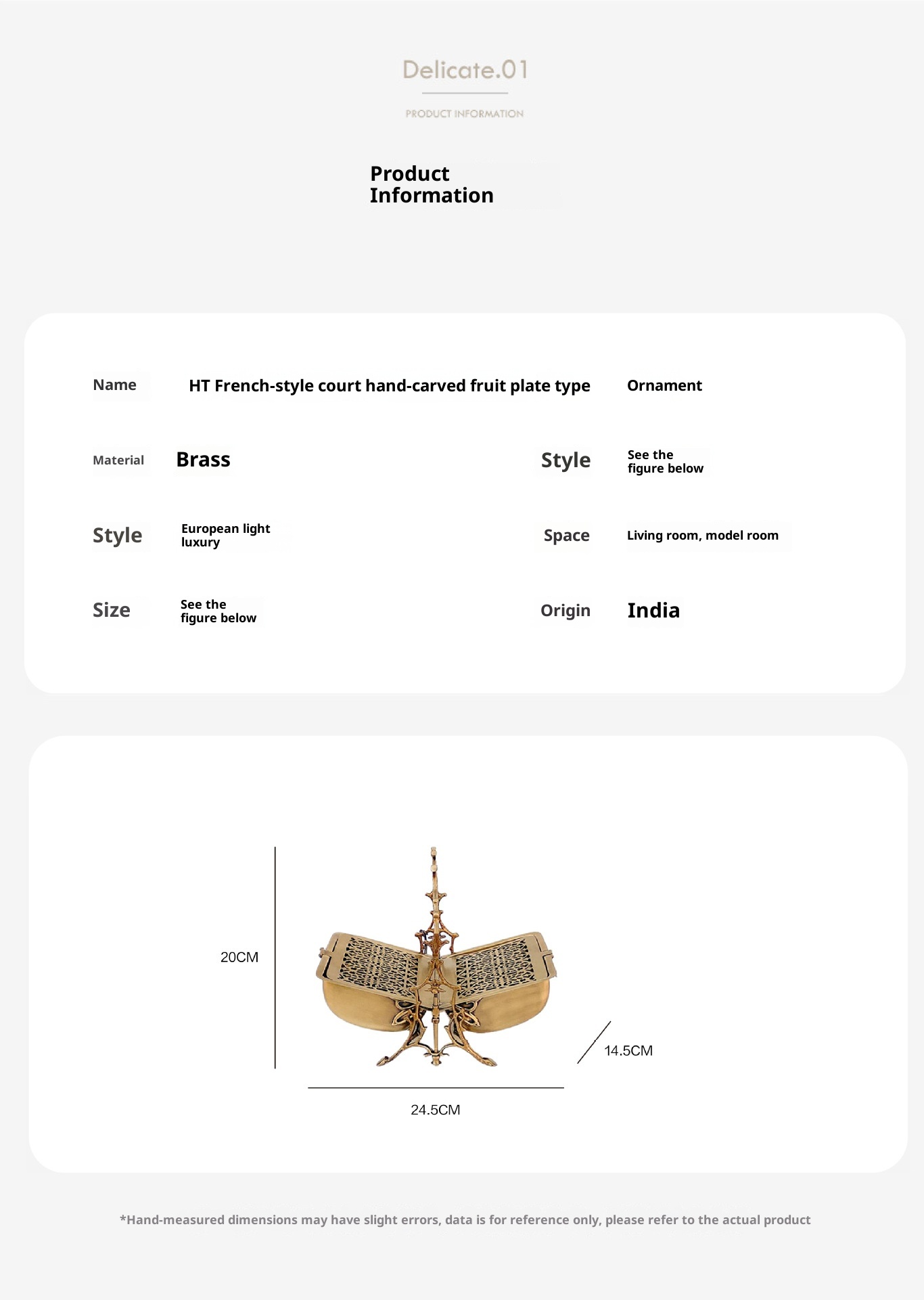 Style3:HT French retro brass carved tray dimension