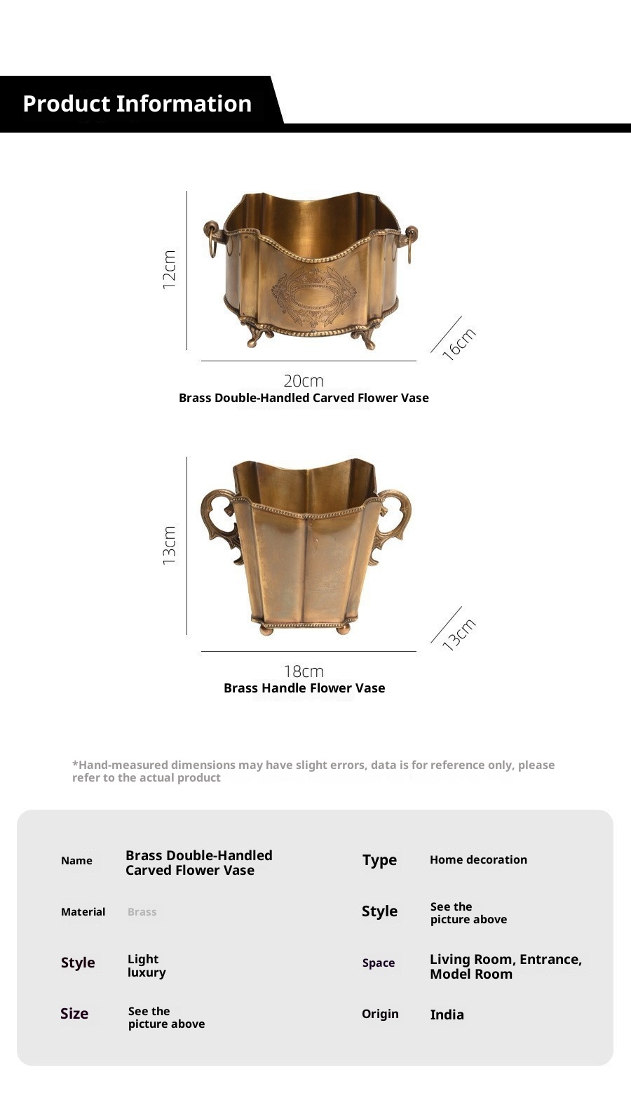 Style9:Brass double-eared carved flowerware