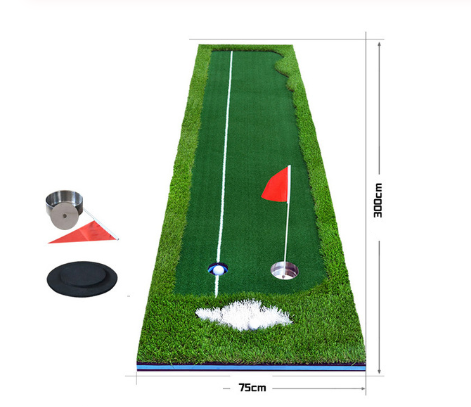 Help in using the product: place the golf ball at a suitable distance from the hole with the practice blanket and hit the ball with the club.