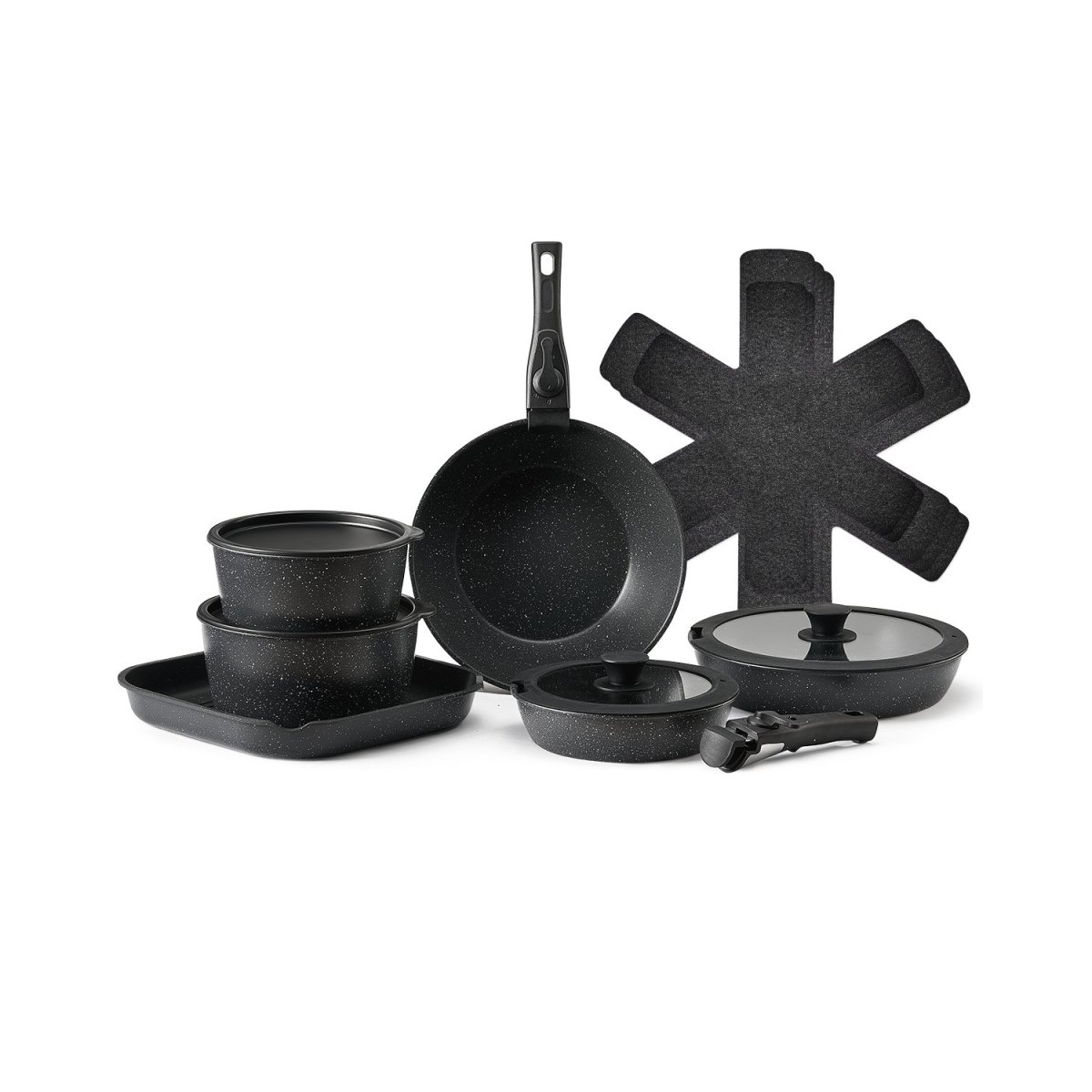 VEVOR Induktion Töpfe Pfannen Set (17-teilig) mit Glasdeckel antihaftbeschichtetes Kochgeschirr mit abnehmbarem Griff, Induktionskochtöpfe zum Braten, Würzen von So_en und Kochen (Schwarz)