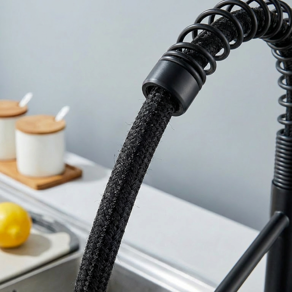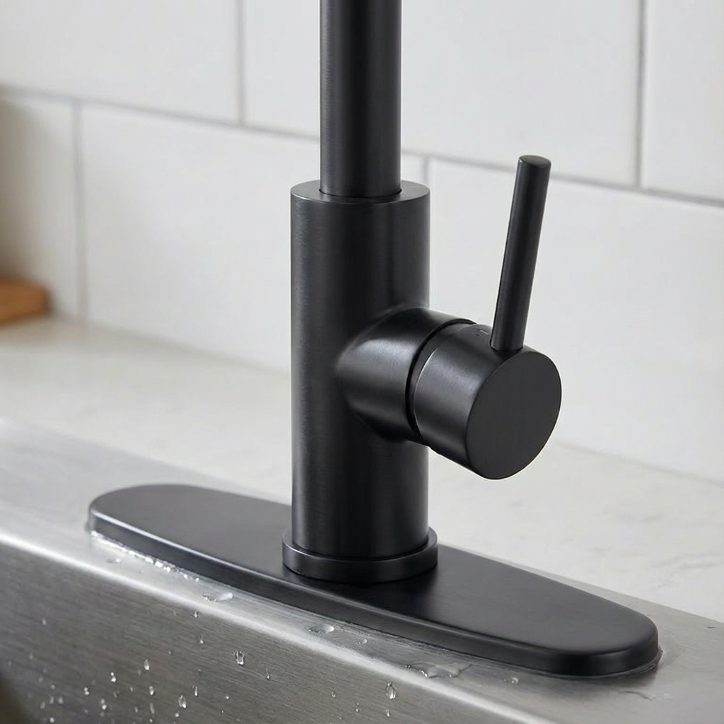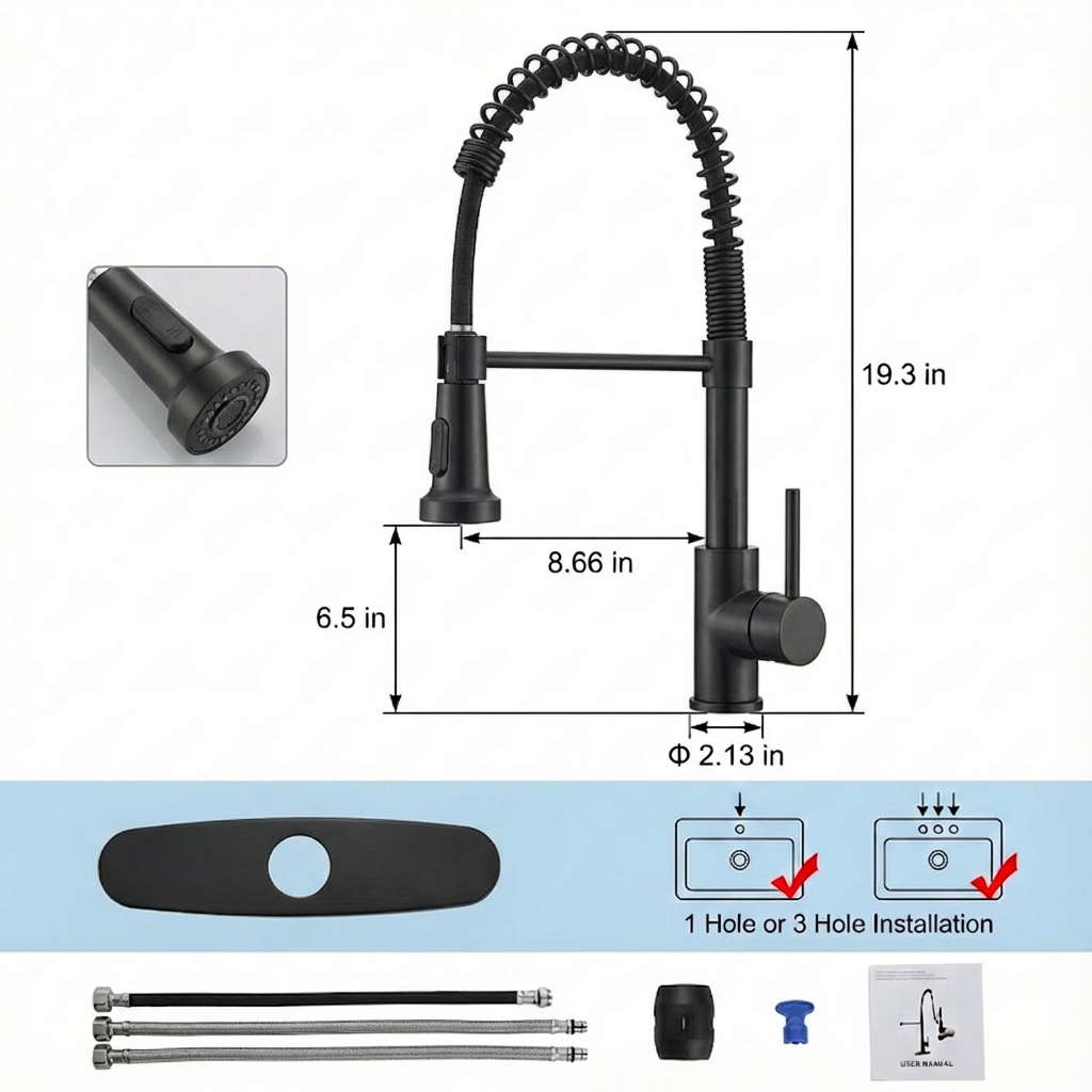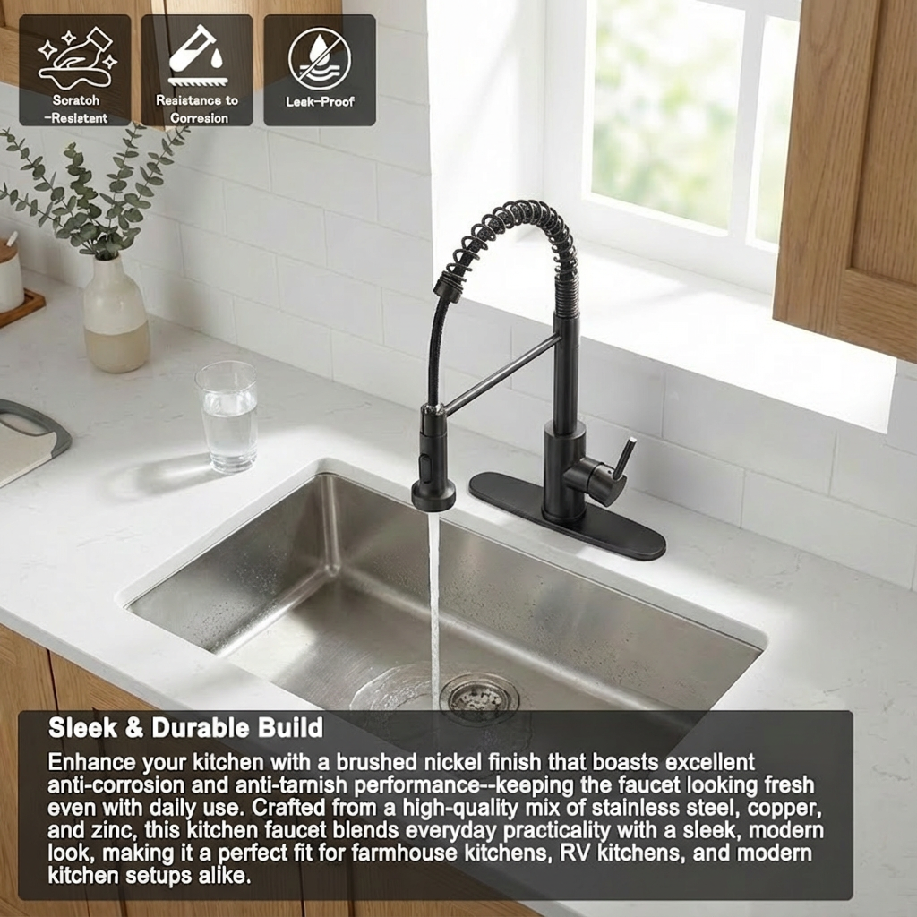 • Dual Spray Modes for Versatile Use Equipped with a sprayer, this kitchen faucet offers two practical spray settings: a soft aerated stream (ideal for filling pots and gentle rinsing) and a splash-free powerful spray (great for scrubbing dishes or cleaning the sink). The hard rubber spray holes ensure consistent water flow, while the 360-degree swivel design of the sprayer covers every corner of the sink. The mode switch is also flexible—you can set it to any position that suits your use habits.