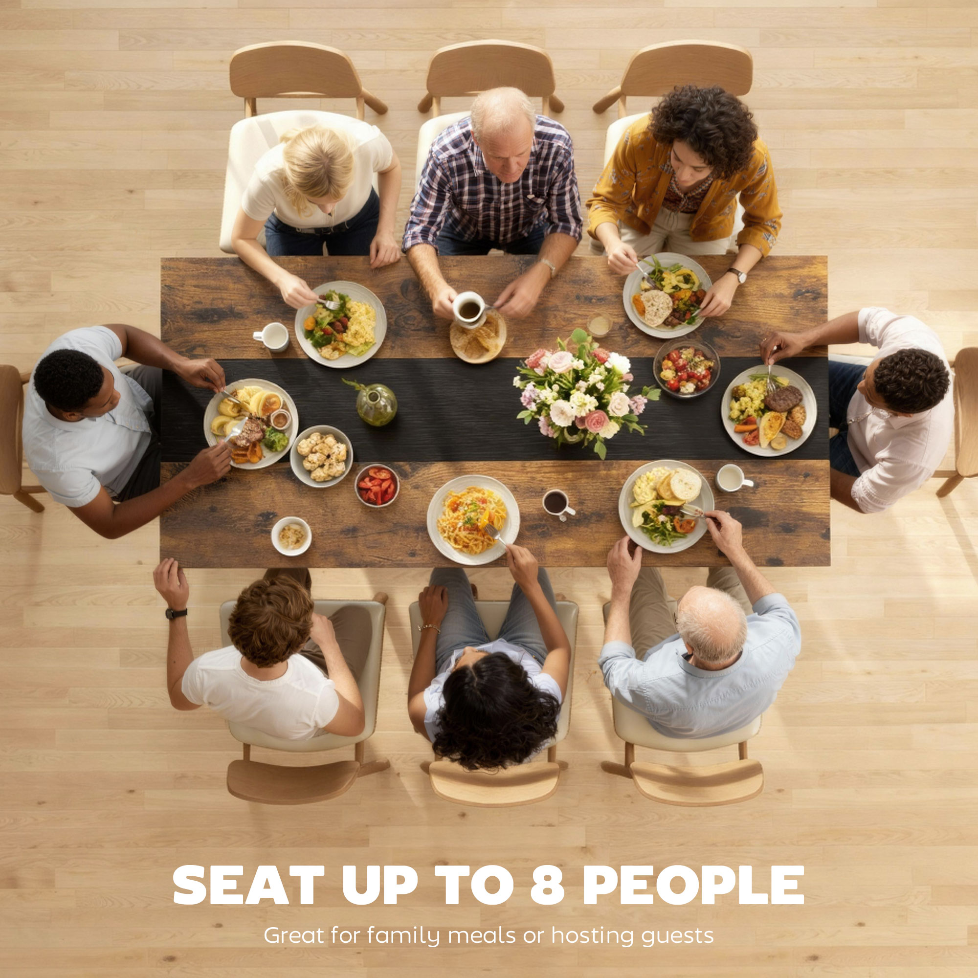 - Spacious Dining Experience: This rectangle dining table measures 70.9" W x 33.5" D x 29.5" H, comfortably seating up to eight people for enjoyable family meals or gatherings