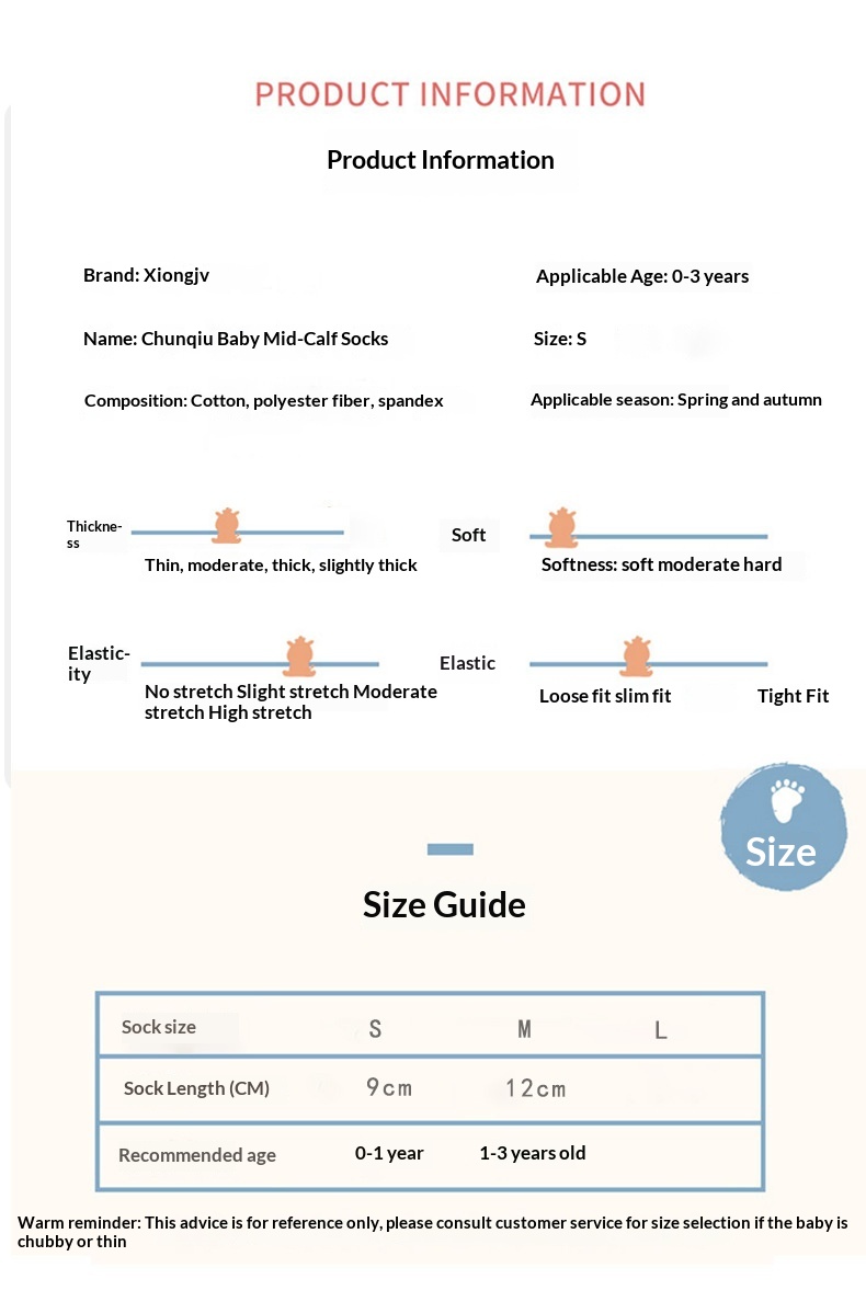 Sizes: Size S for 0–1 years, Size M for 1–3 years