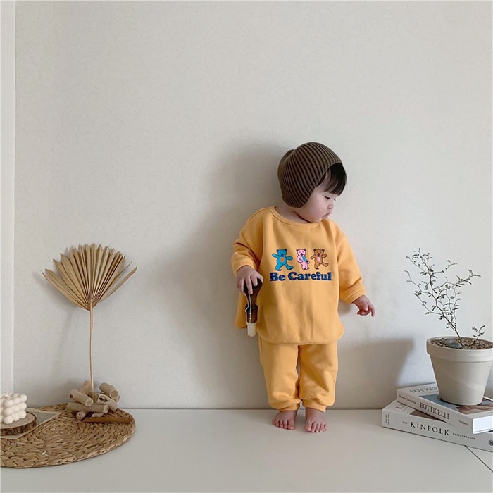 Colour:Yellow Three Bears BLACKBEAN Long Sleeve Sweater + Trousers, Beige Three Bears BLACKBEAN Long Sleeve Sweater + Trousers