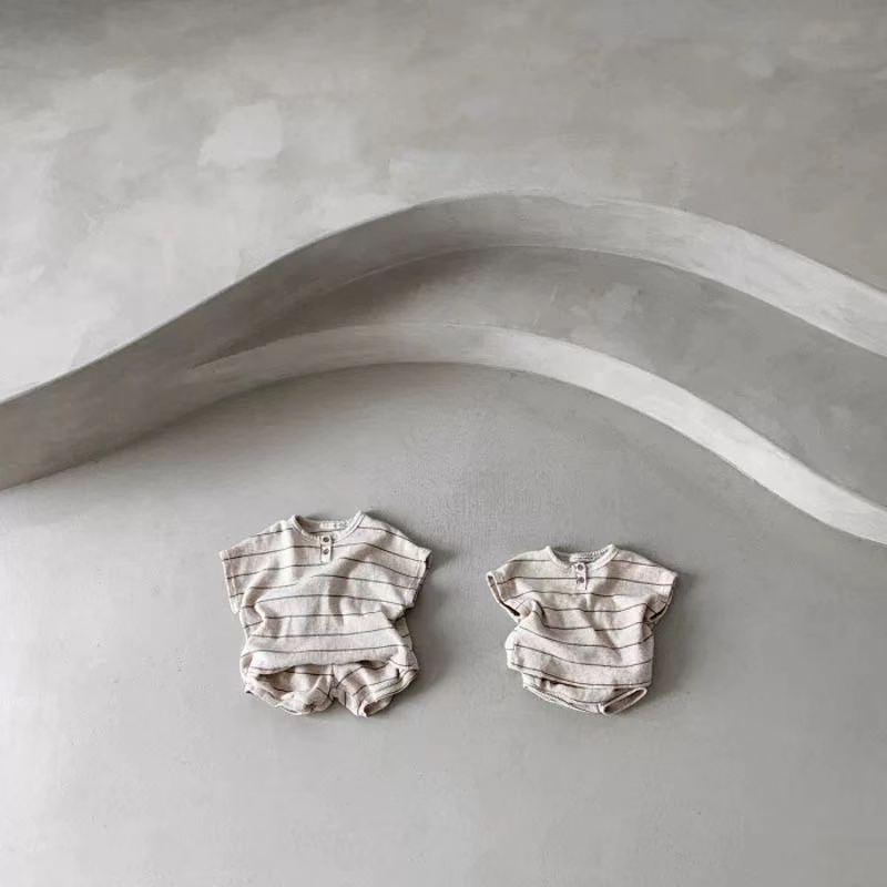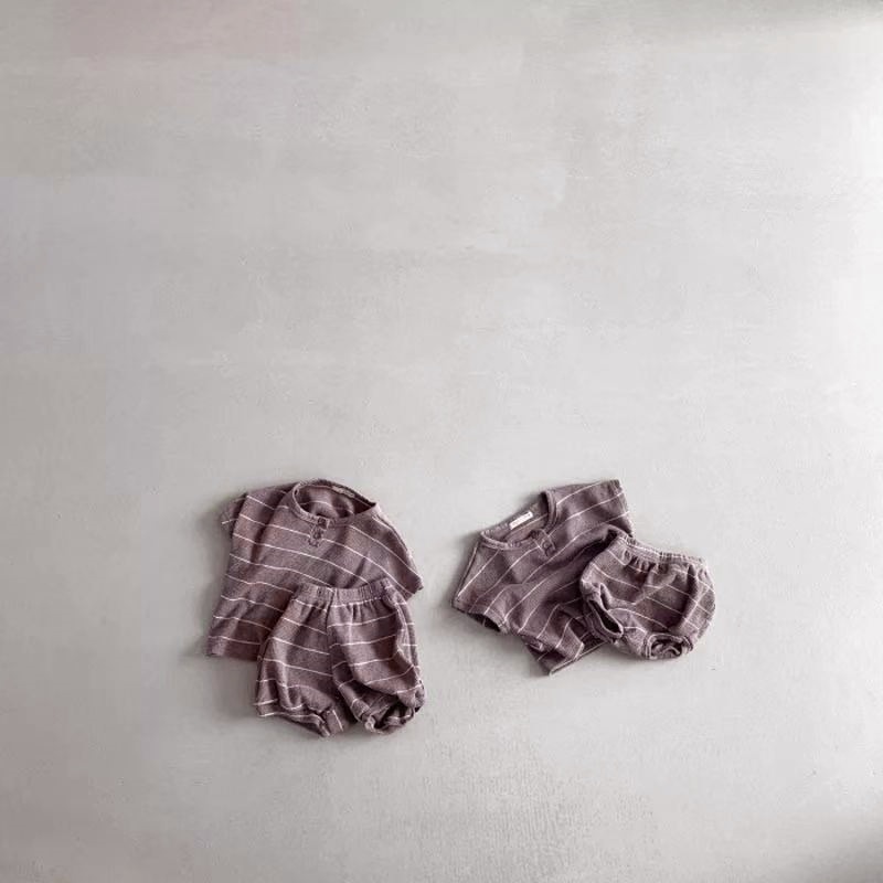 Color: Beige Wide Stripe Waffle Short Sleeve T-Shirt/Short, Coffee Wide Stripe Waffle Short Sleeve T-Shirt/Short
