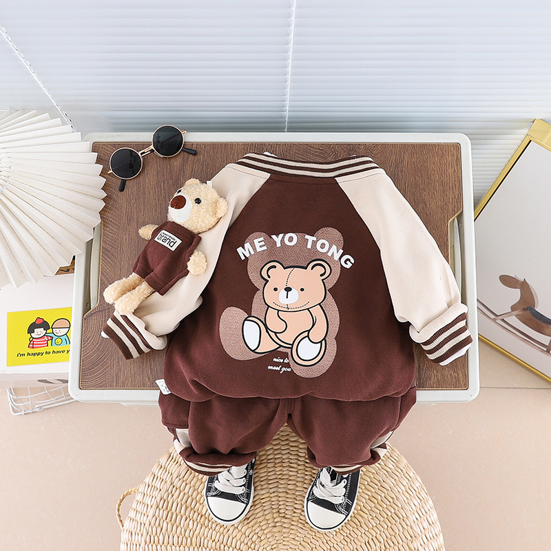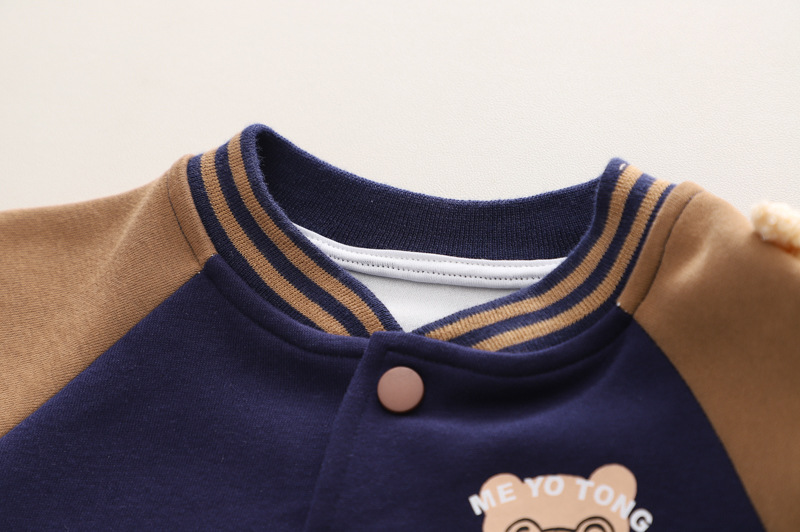 Color: long sleeve three-piece bear baseball uniform brown, long sleeve three-piece bear baseball uniform navy blue