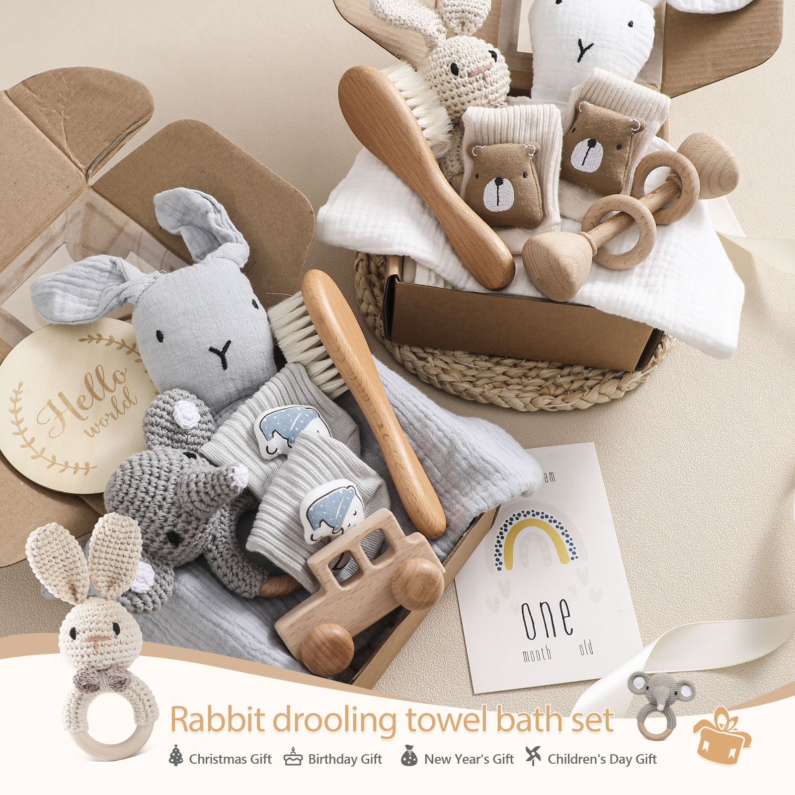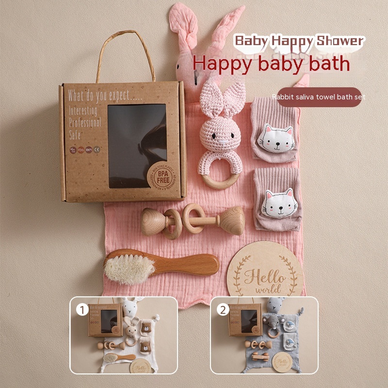 Infant Comfort Rattle Rabbit Bath Towel Gift Set