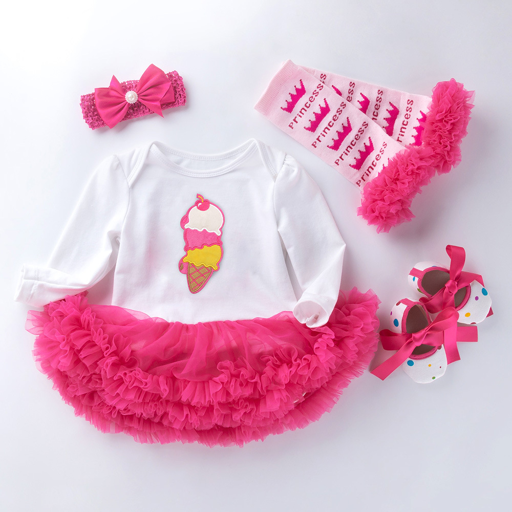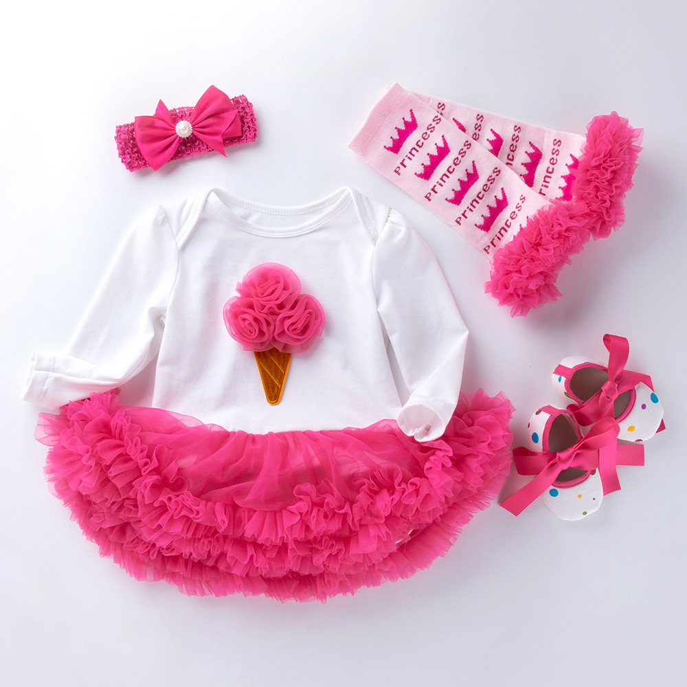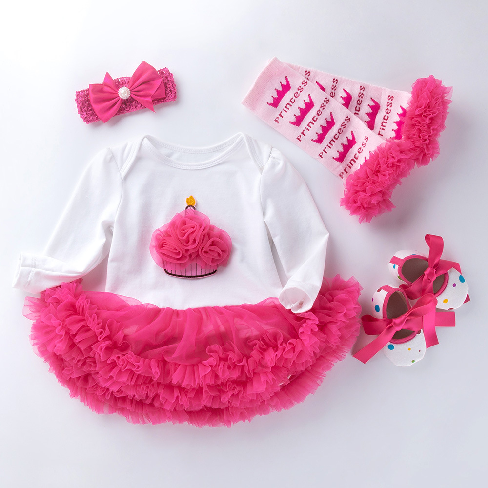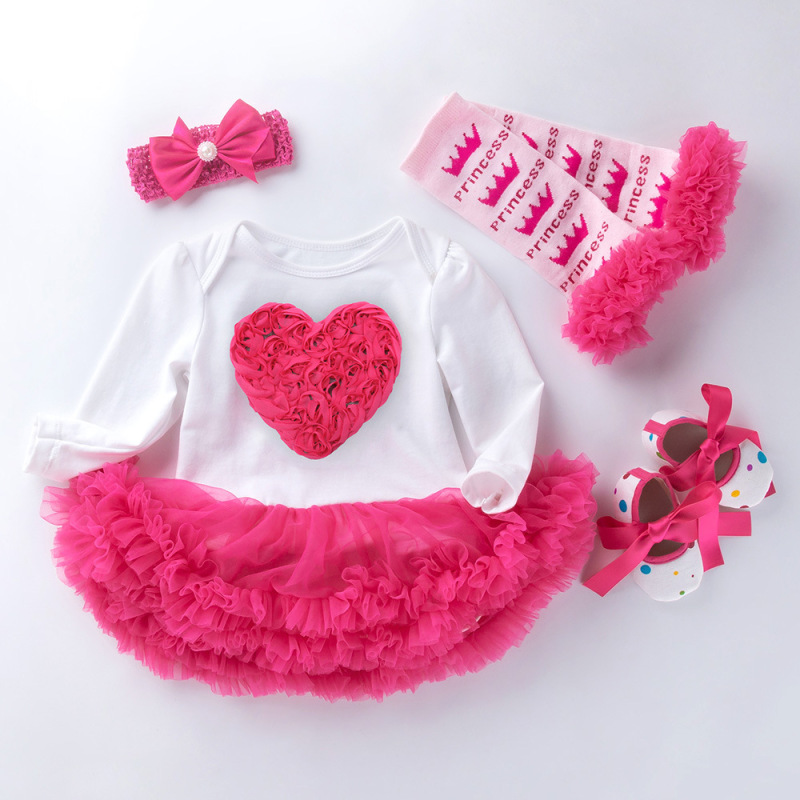 Infant Long Sleeve Cotton Rose Red For Girl Yarn Dress