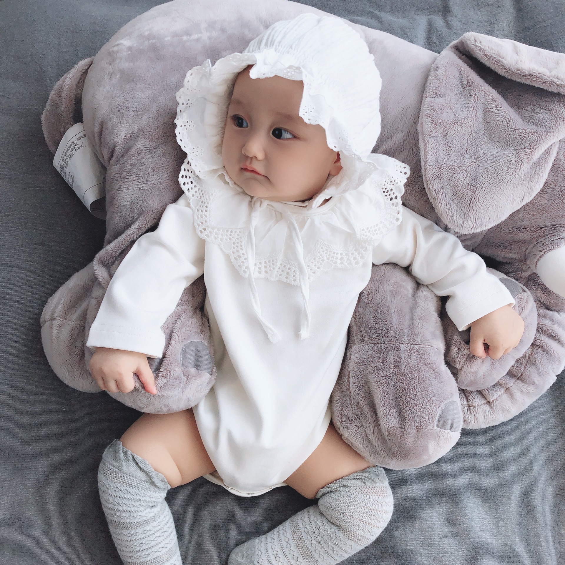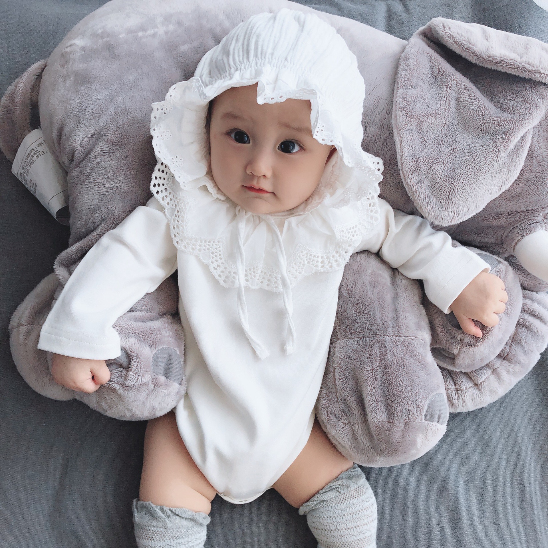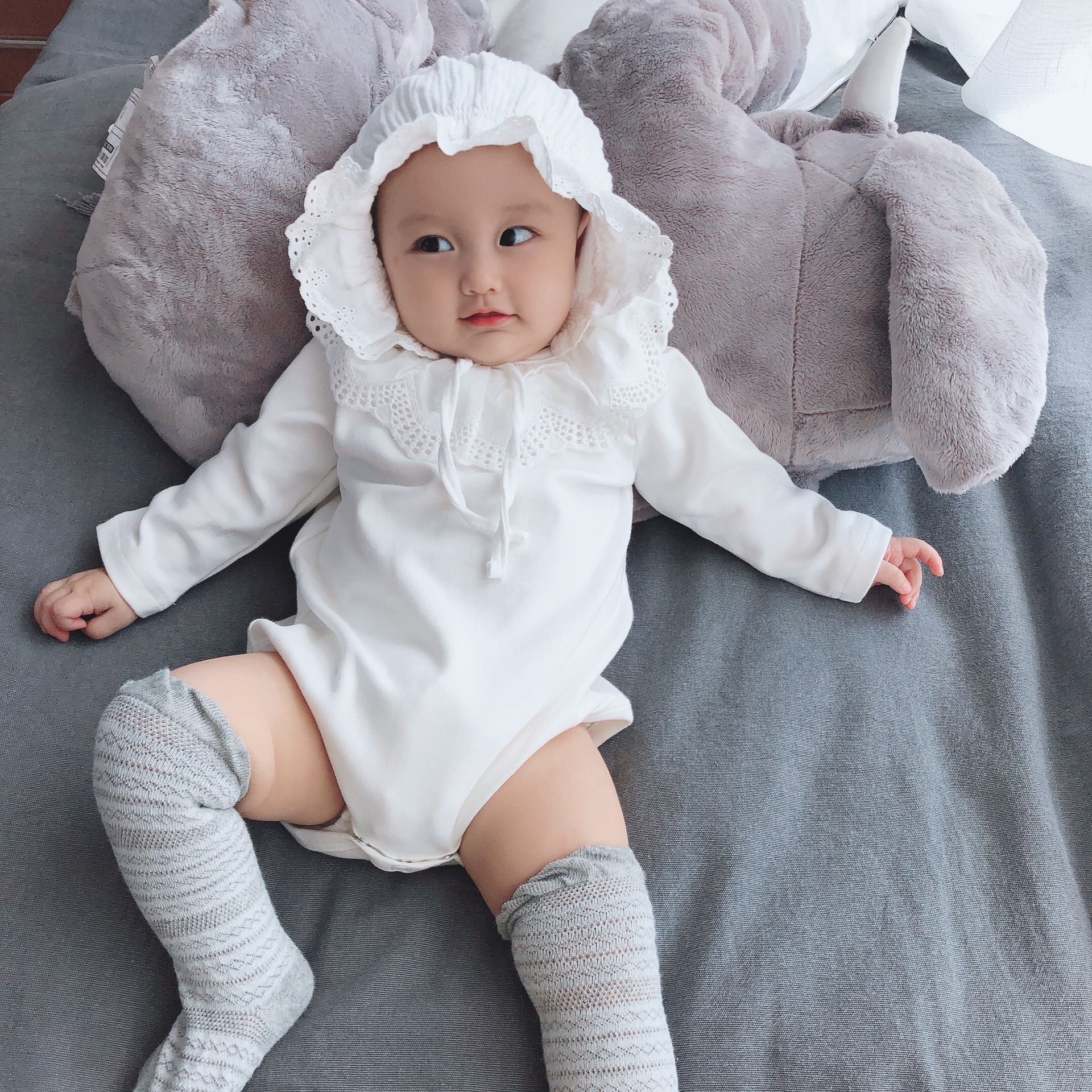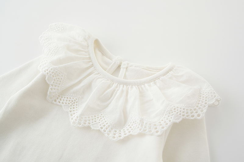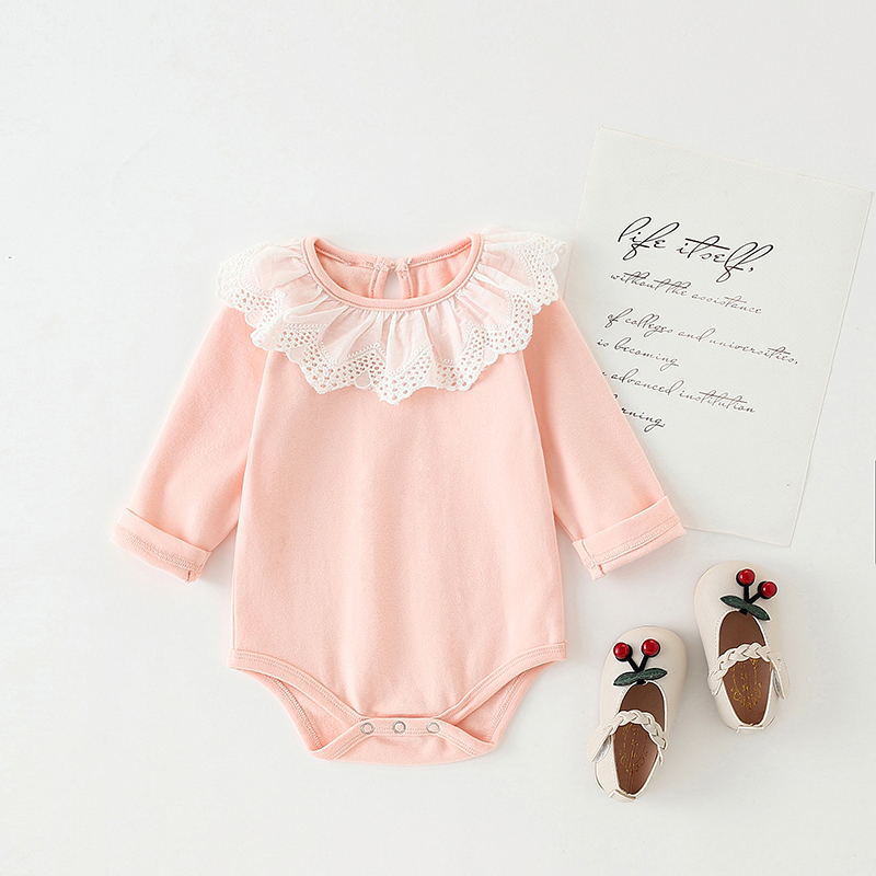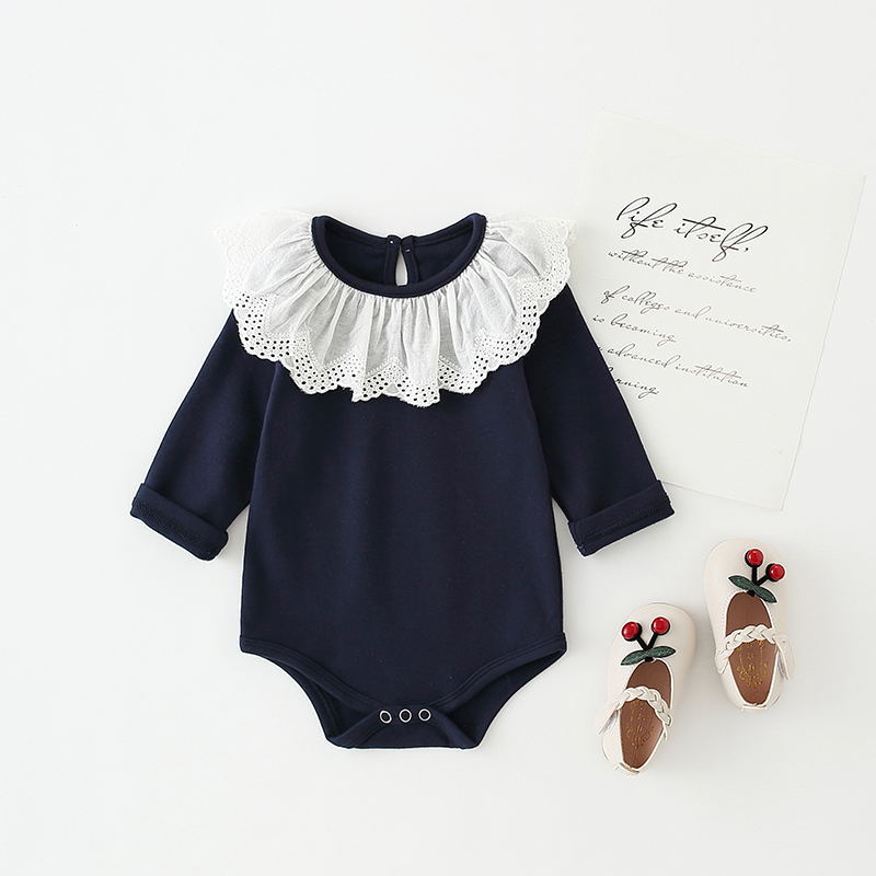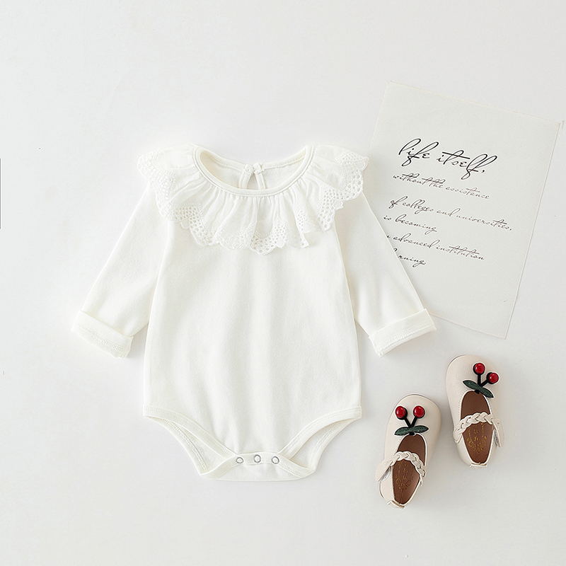 Color: White lace collar romper, light gray lace collar romper, pink lace collar romper, yellow lace collar romper, navy blue lace collar romper, brick red lace collar romper