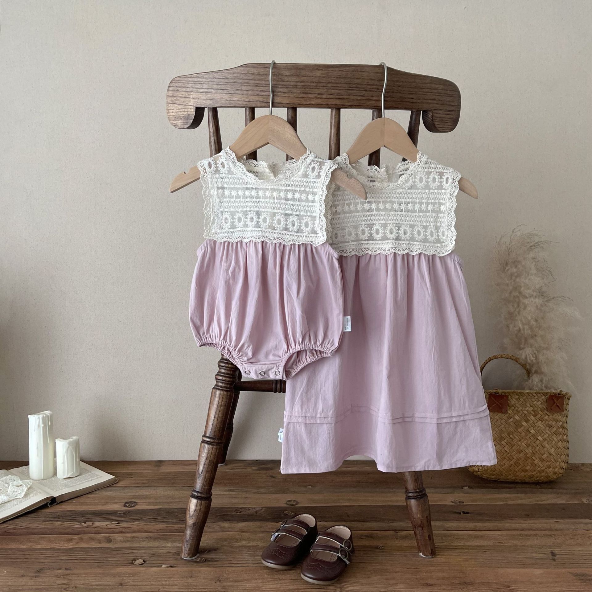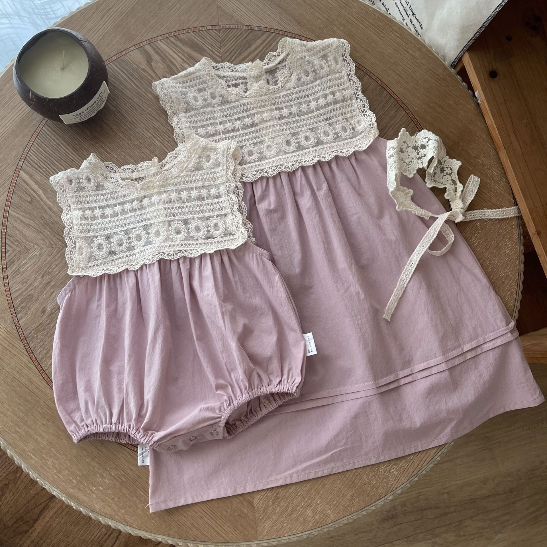 Infant Sisters Outfit Lace Embroidery Princess Vest Dress Female