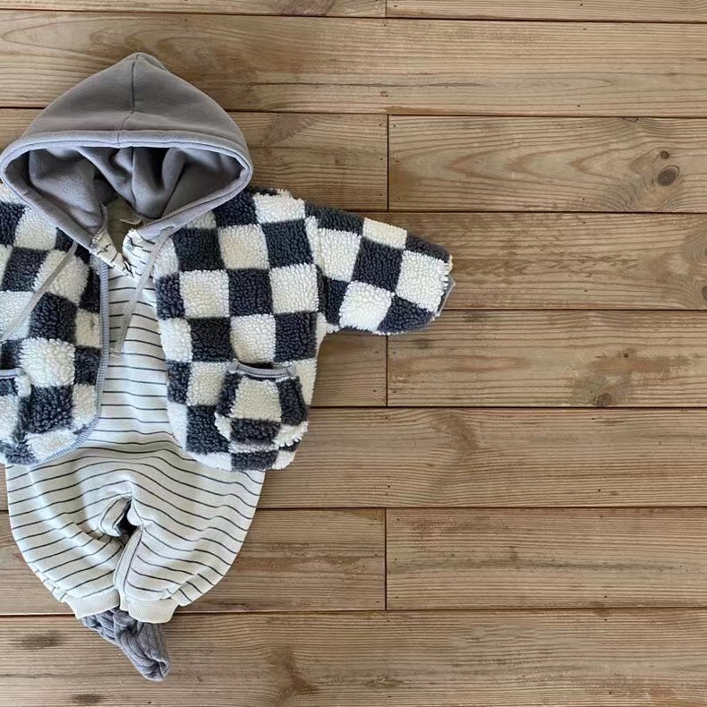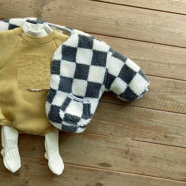 Color: coffee lamb wool long sleeve coat, gray plaid lamb wool long sleeve coat, khaki plaid lamb wool long sleeve coat