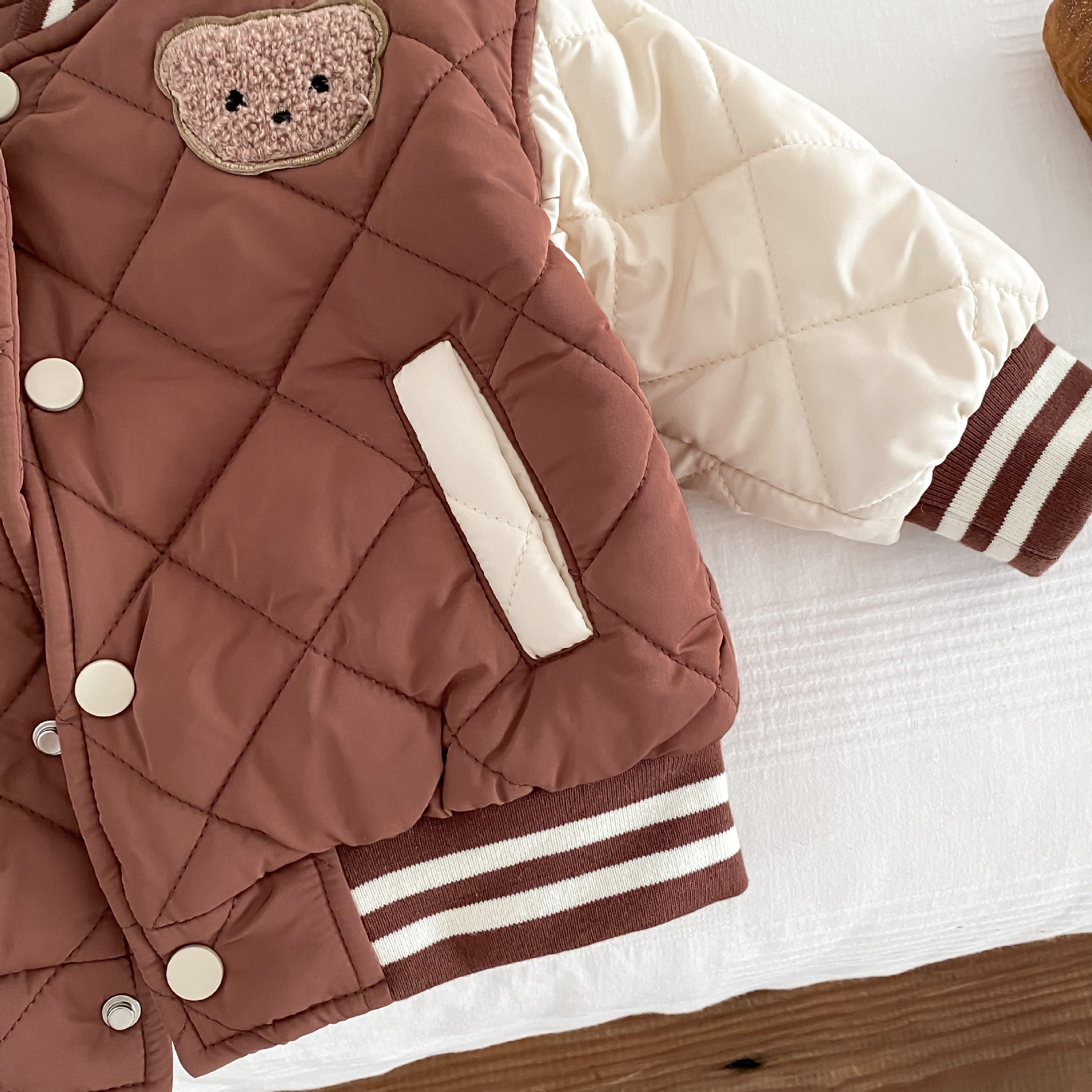 Color classification: reddish brown quilted bear coat