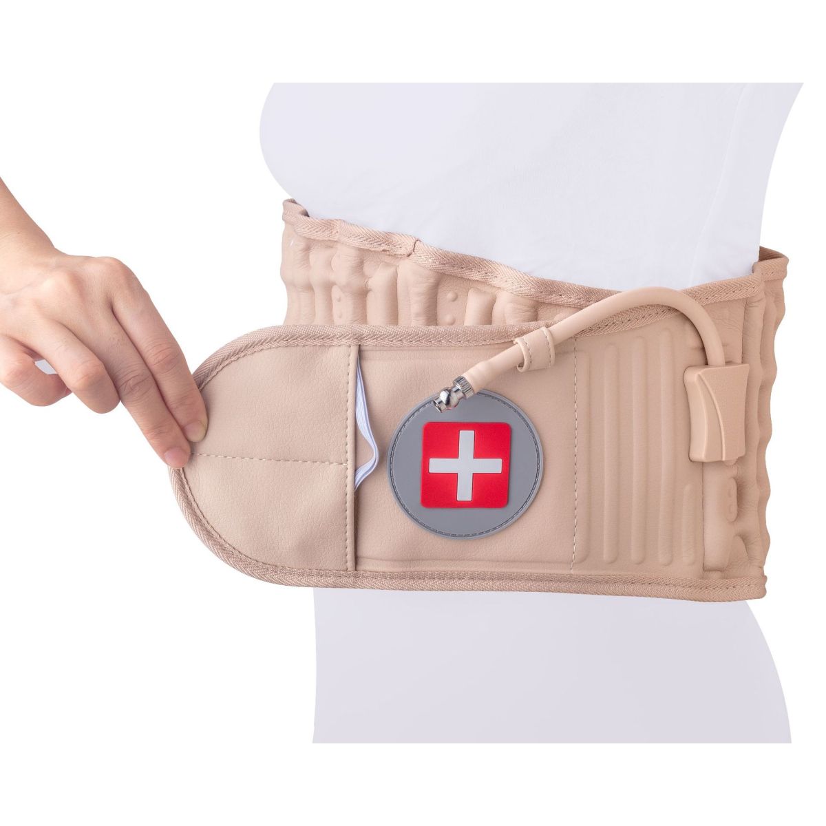 Clip the pump onto the gas valve of the belt, then inflate the belt by pumping the pump
