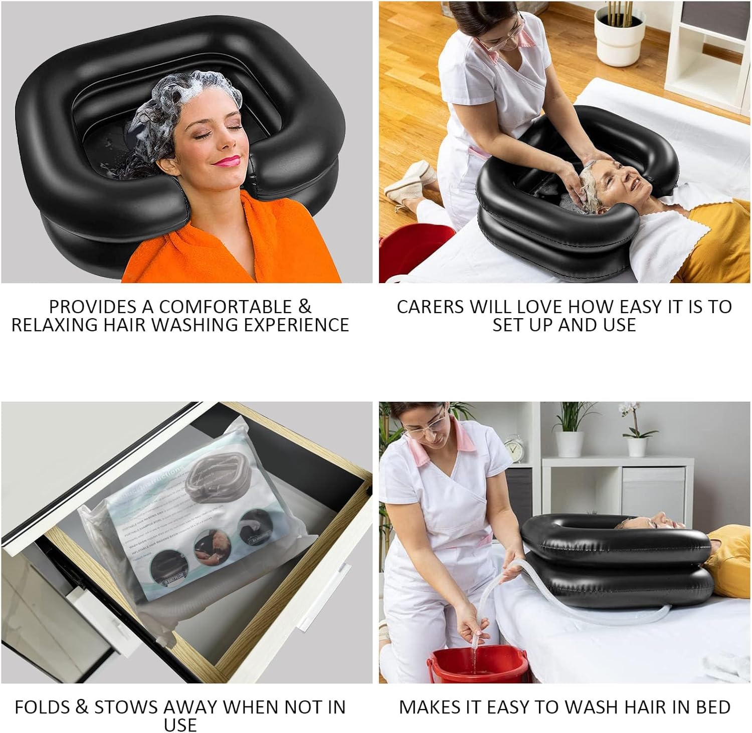 Designed for comfortable and convenient in-bed hair washing.