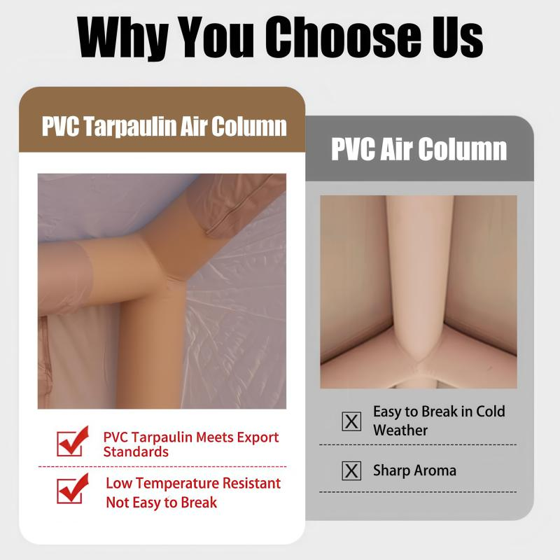 [Easy To Set Up]This inflatable tent is constructed with a special one-piece TPU inflatable tube and comes with a pump.there are 2 air inlets on the tent, by manually pumping the air through these two air inlets, remember to tighten the other inflation port during inflation,you can quickly put it up in 5 minutes.It is very easy to set up than a tent with regular poles.