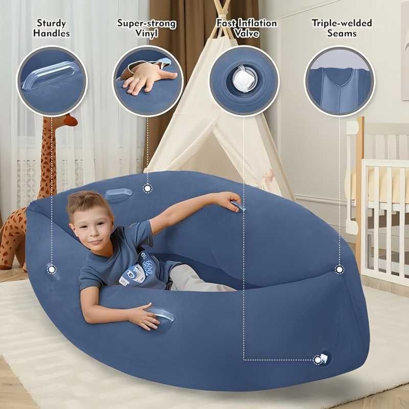 Inflatable Pea Pod Chair For Comfortable Faux Fur Bean Bag Lounger Sensory Pad Inflatable Lounge Chair Ergonomic Bean Bag Sofa For Indoor Outdoor Use Birthday Party Home Decor