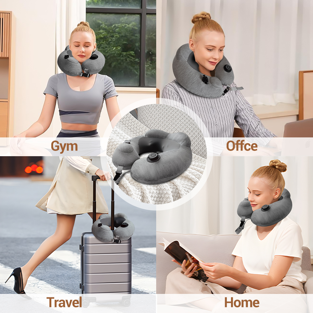 Weighs minimal deflated, includes carry bag, ideal for flights, cars, or office breaks to relieve neck tension on-the-go.