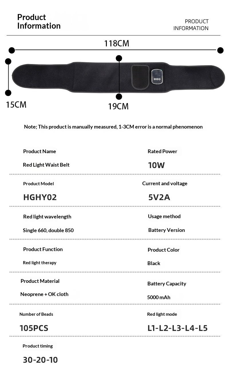 Color Option: Black Red-Light Massage Waist Belt (Wireless Touchscreen)