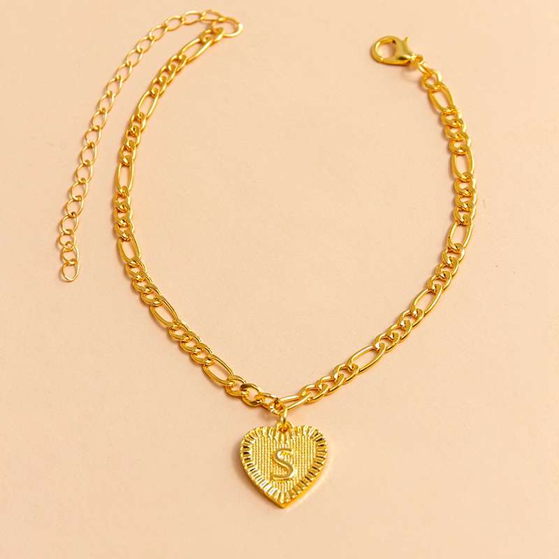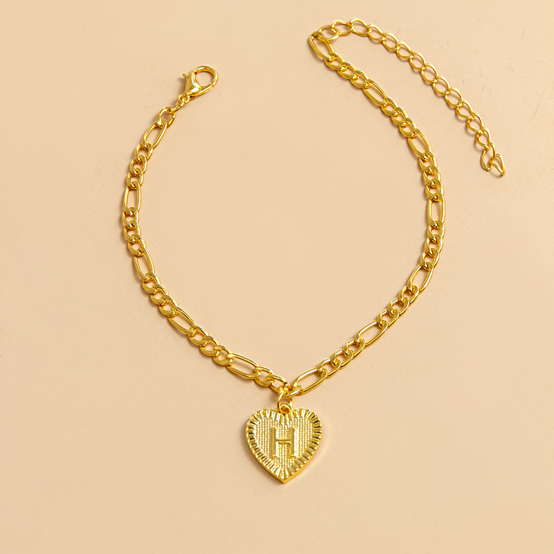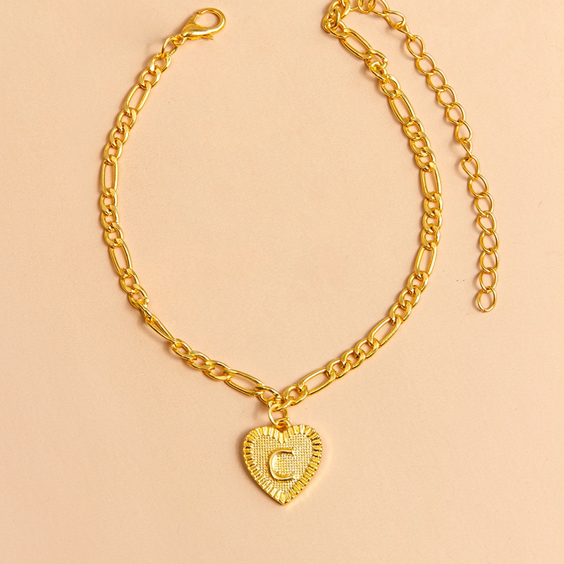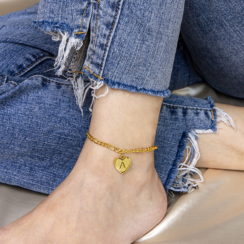 Initial Letter Anklet Gold Color Heart Pendant Foot Bracelets Women
