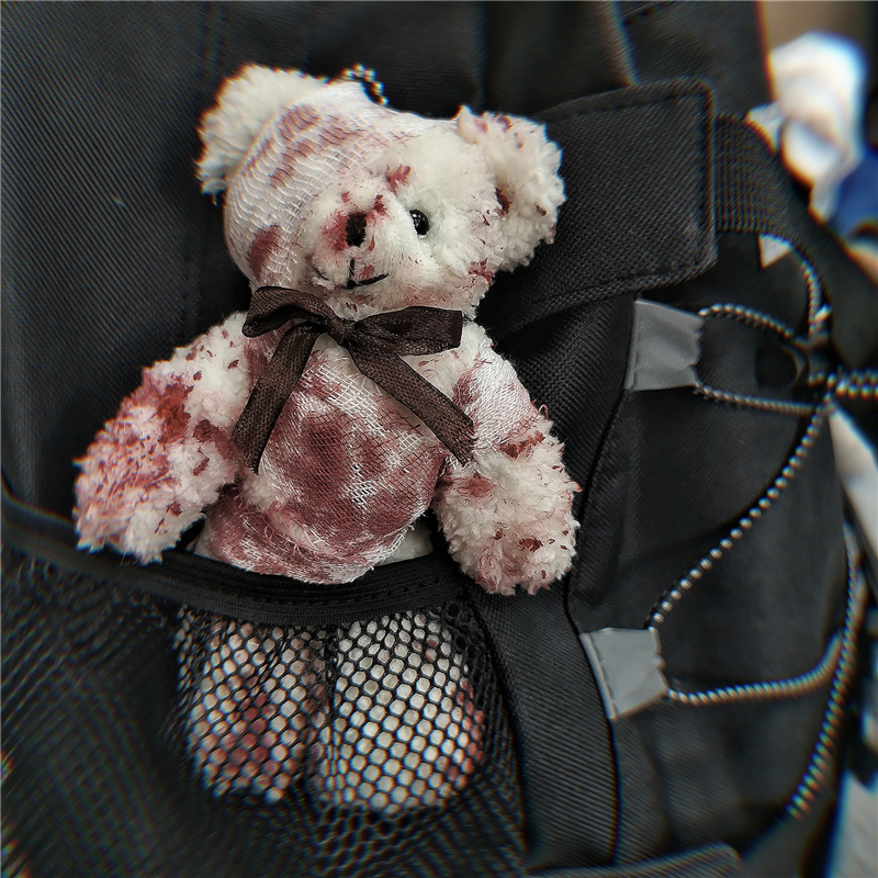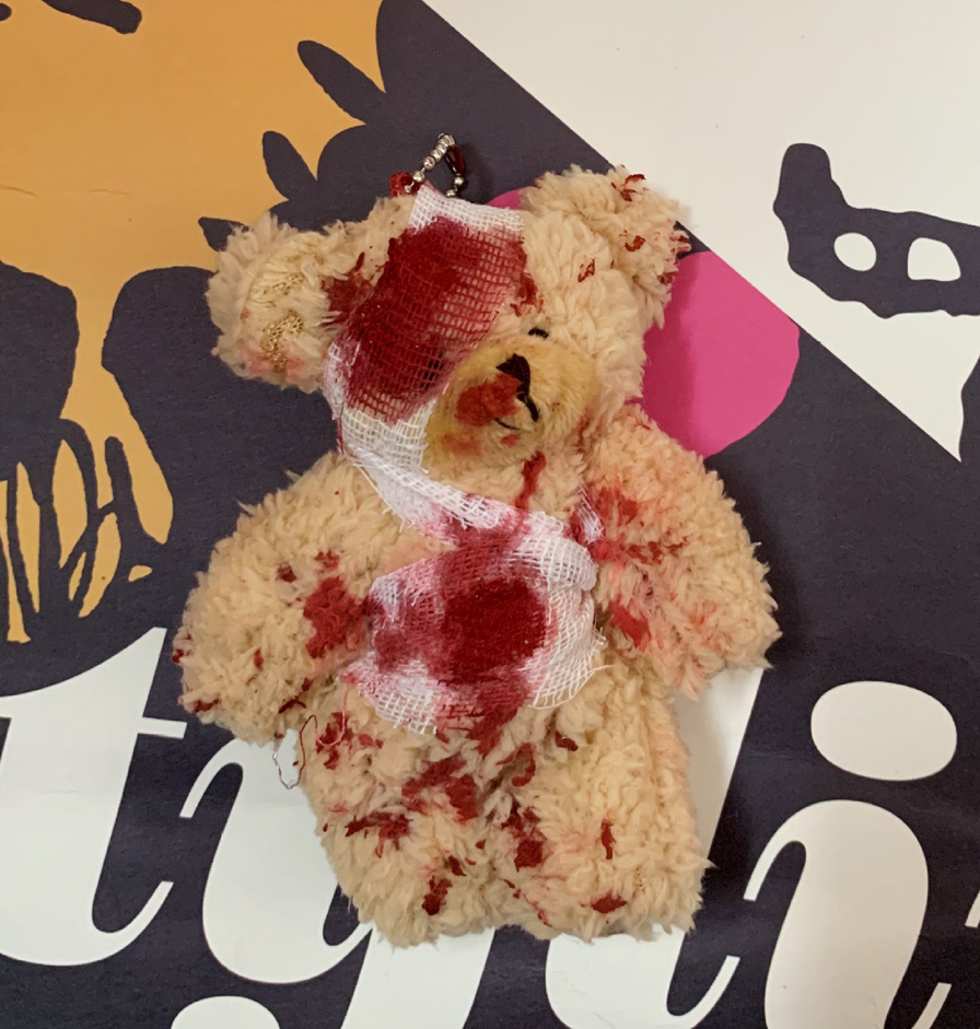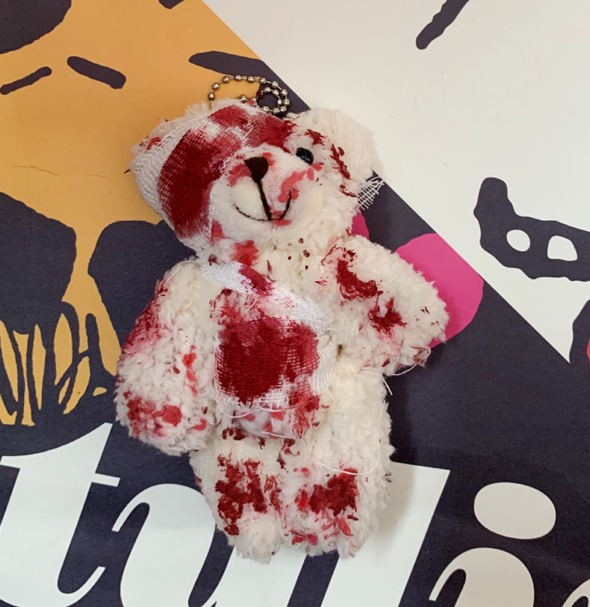 Color: one injured little white bear, one injured little brown bear, a set of white + brown injured little bears, dinosaur green