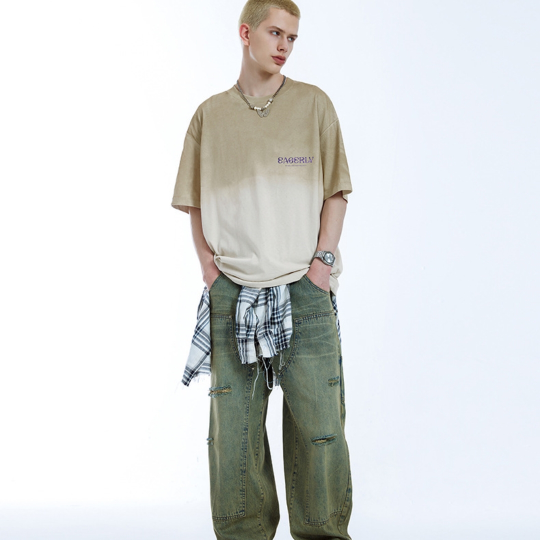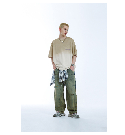Inkjet Gradient T-shirt Springsummer Trendy Brand New Loose Street Casual Short-sleeved Men's Top