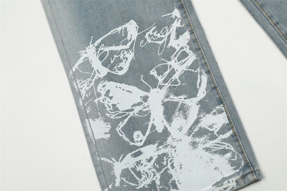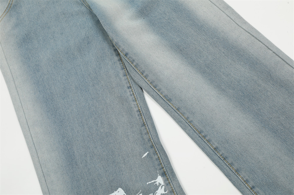 Inkjet Gradient Wide Leg Denim Trousers Men's Hip Hop