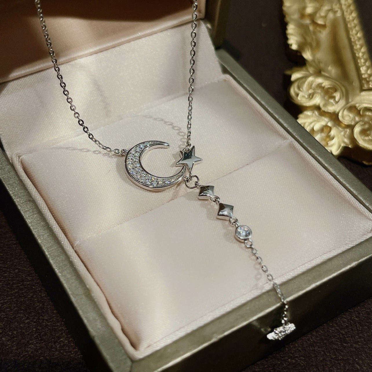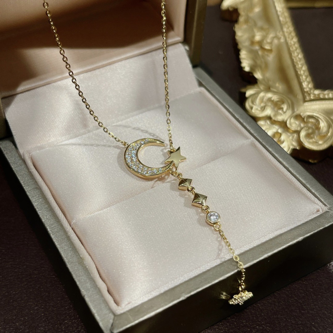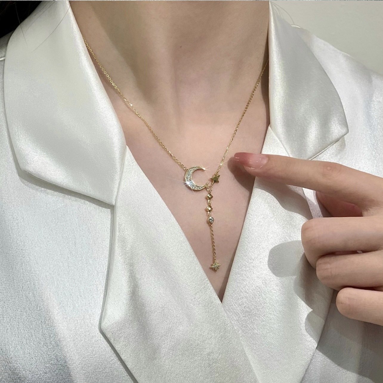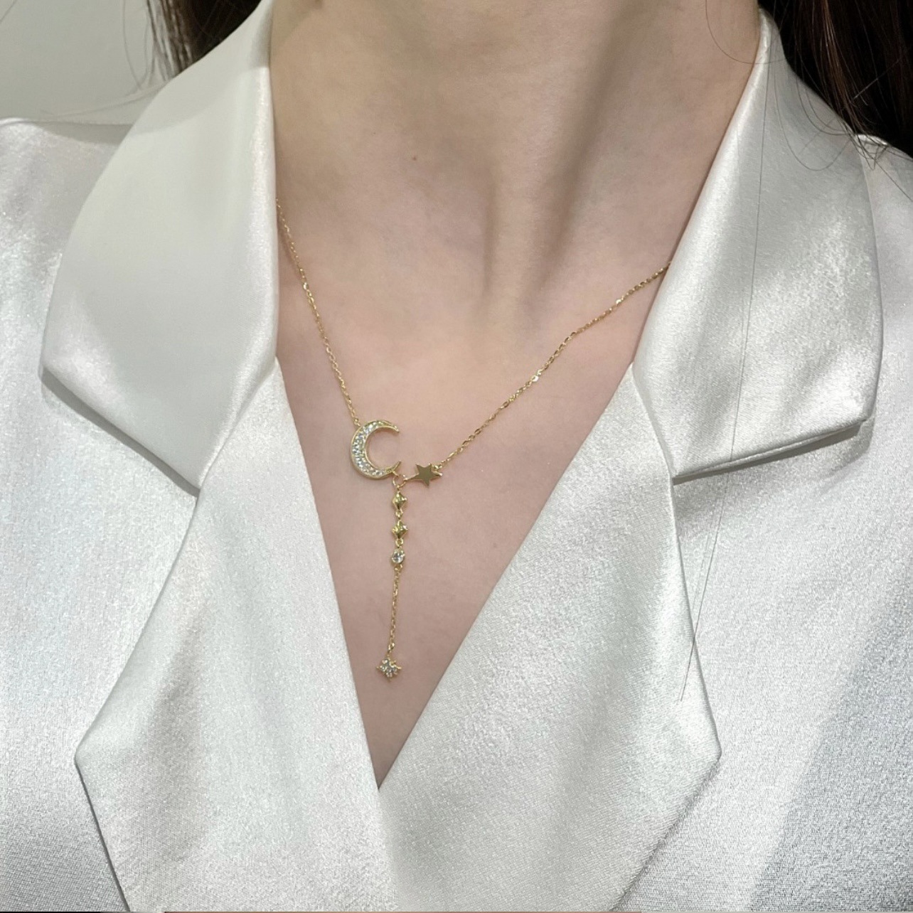 Inlaid Zircon Moon Star Collarbone Chain Sweet Lady And Exquisite Star And Moon Tassel Necklace