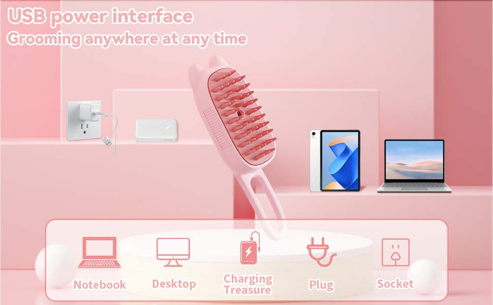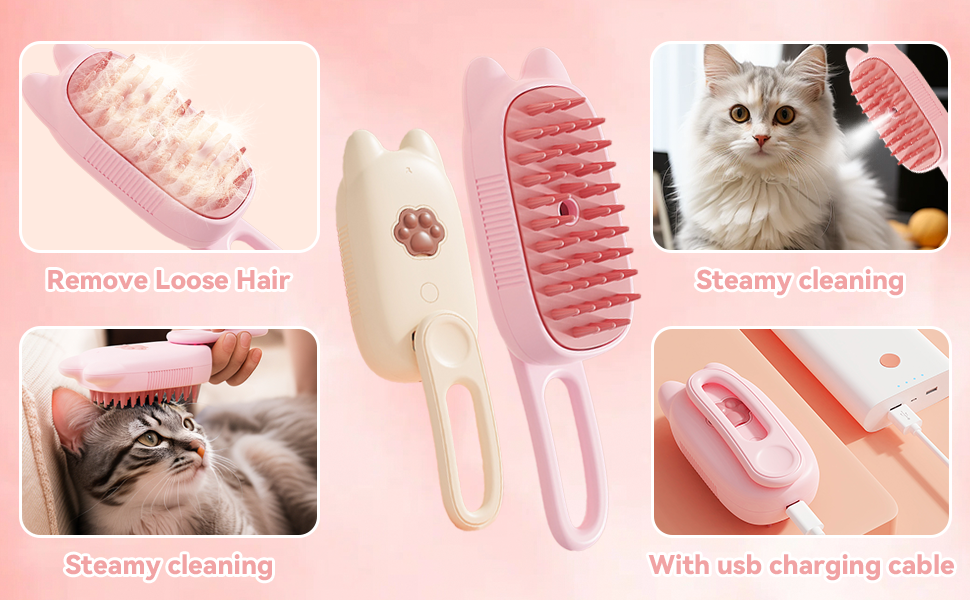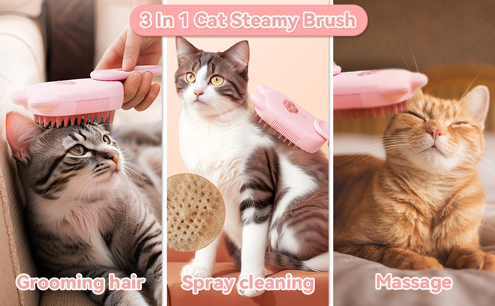 Innovative 3 In 1 Pet Steam Brush Shedding Massage And Grooming In One Perfect For Dogs And Cats Short And Long Hair Static Flying Hair Remover And Water Sprayer