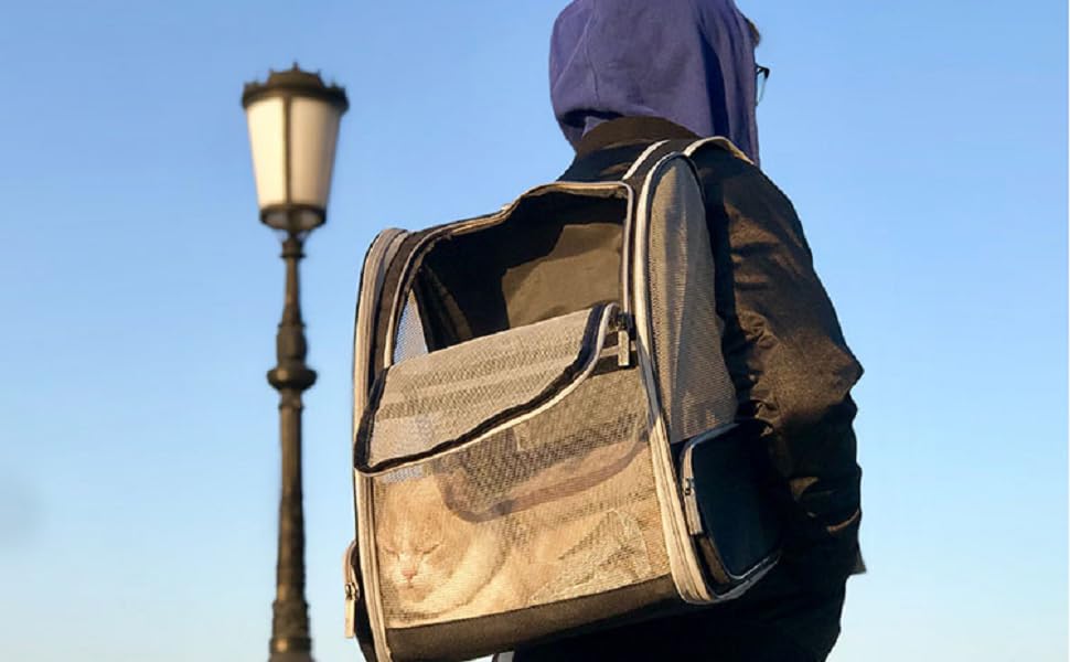 Reduce shoulder weight:This cat carrier backpack comes with chest buckles which helps to reduce the burden and keeps the shoulder straps from slipping while pet moving