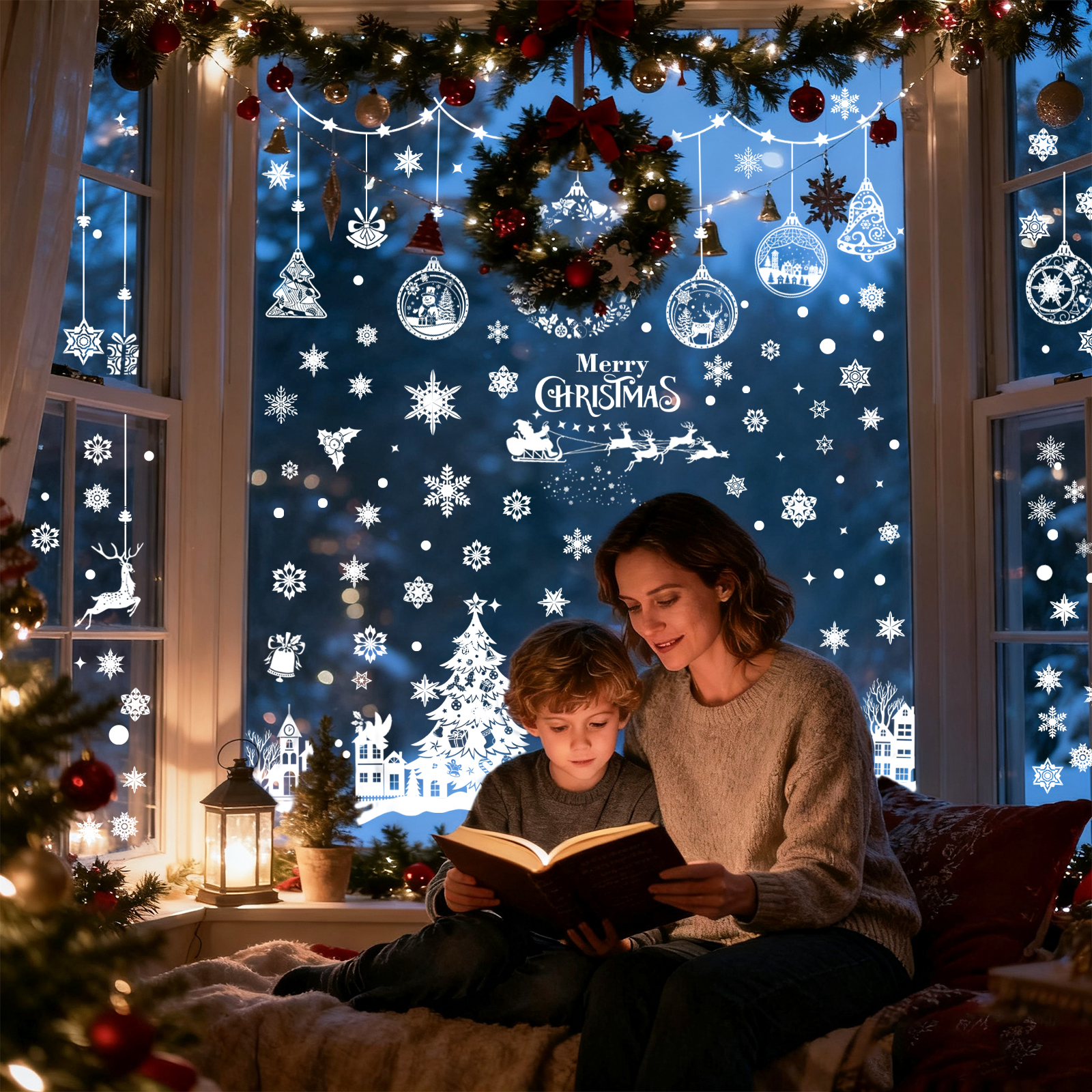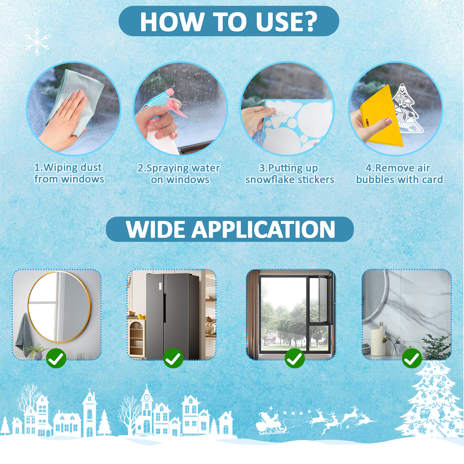 USER-FRIENDLY CHRISTMAS DECALS: Our Christmas decals utilize static cling technology – ensuring no messy glue, tapes, or residue! Perfect for family fun: you can effortlessly peel, place or change stickers without damaging windows. Tip: for extra-strong hold, you can slightly spray the window with water before applying the stickers! Create unforgettable memories while turning your house into a magical winter wonderland.