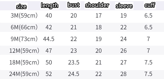 Suitable height: 3M (59cm), 6M (66cm), 9M (73cm), 12M (80cm), 18M (85cm), 24M (90cm)