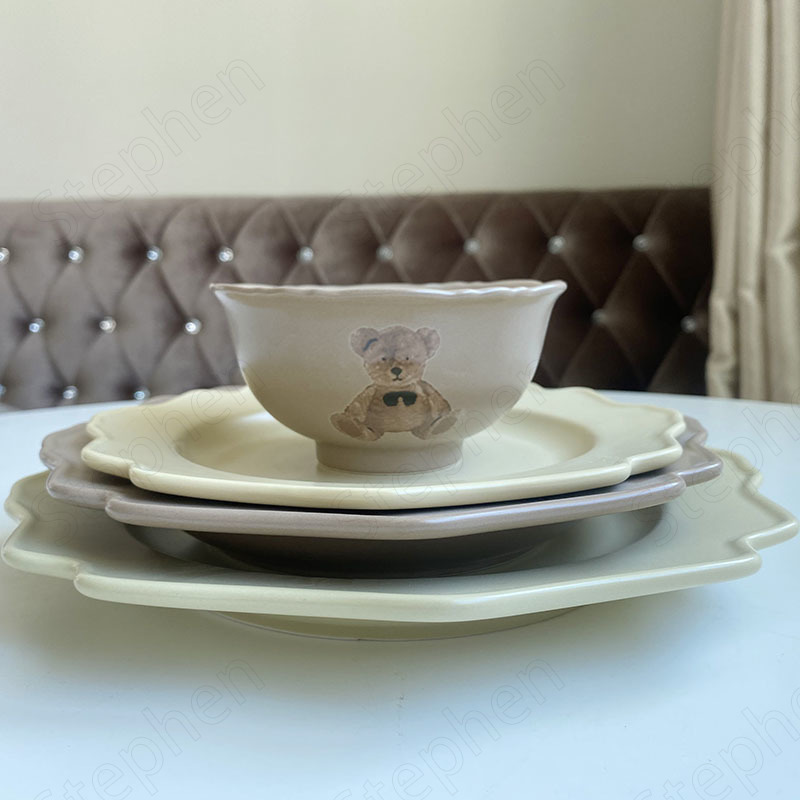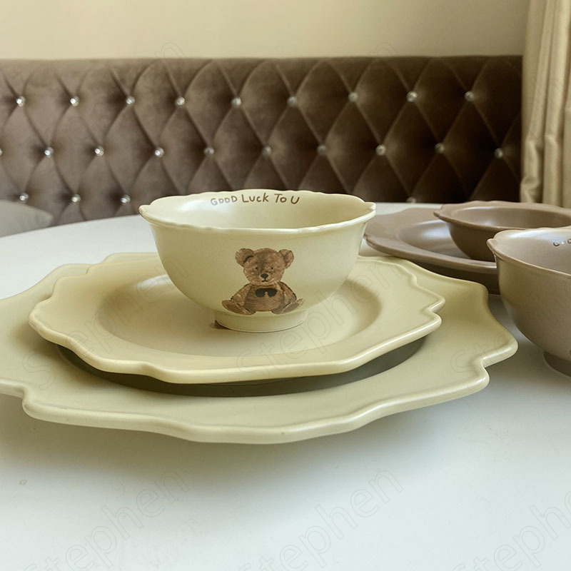 Specifications: 4.7 inches bear rice bowl brown, 4.7 inches bear rice bowl yellow, 6 inches bear rice bowl yellow, 6 inches bear rice bowl brown, 8 inches bear rice bowl yellow, 8 inches bear rice bowl brown, 9 inches bear deep plate yellow, 9 inches bear deep plate Brown, 8 inch bear platter yellow, 8 inch bear platter brown, 10.5 inch bear platter yellow, 10.5 inch bear platter brown