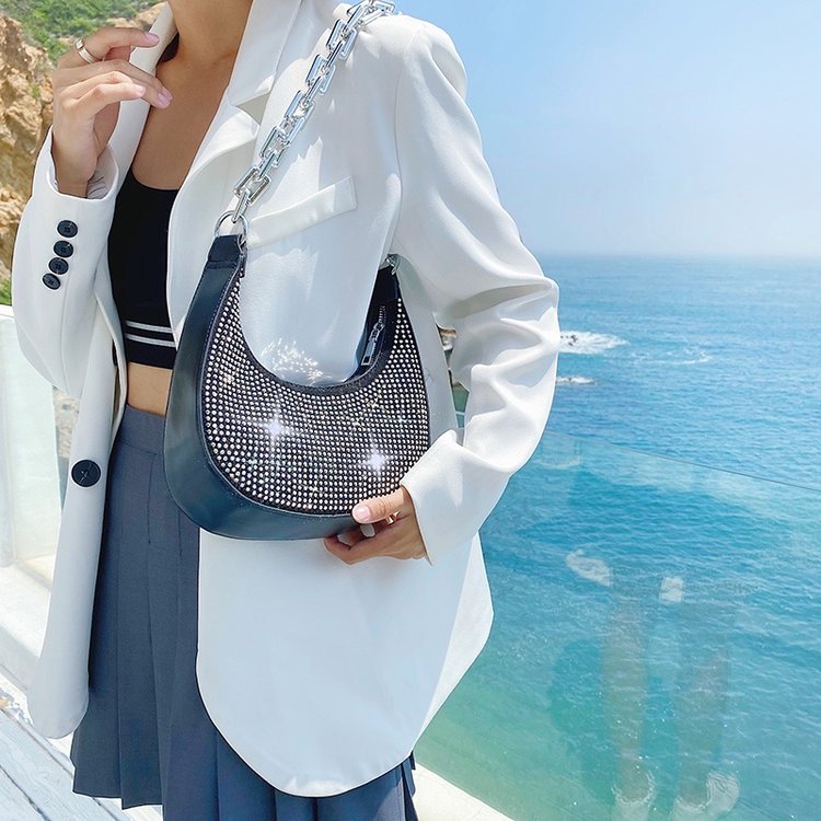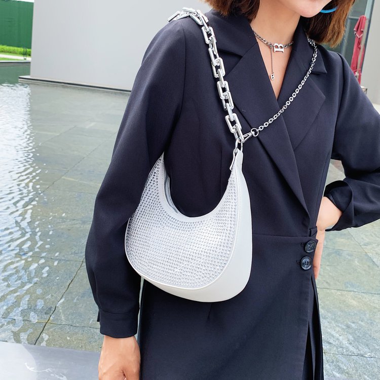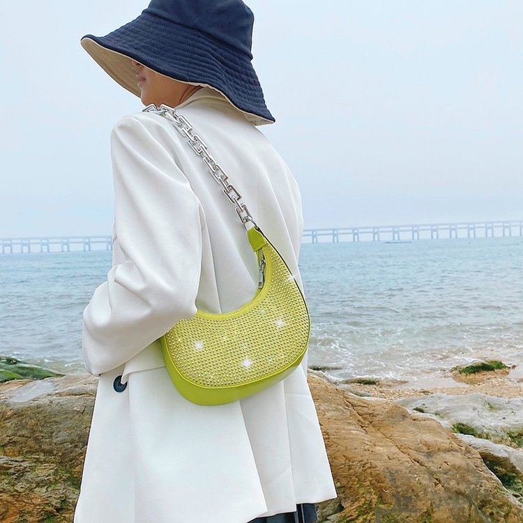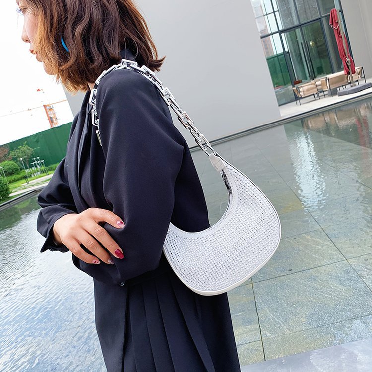 Product information:Color: white, black, greenMaterial: PUFashion bag style: baguette bagBag size: smallSize: all sizePacking list:Bag*1