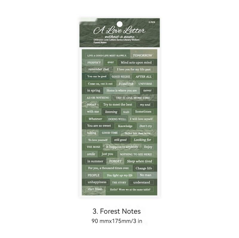 Color: 1. Arrive as promised, 2. Night letters, 3. Forest notes, 4. Time imprint
