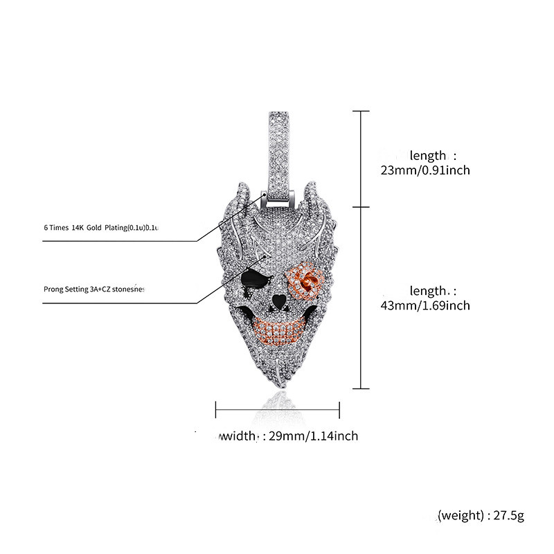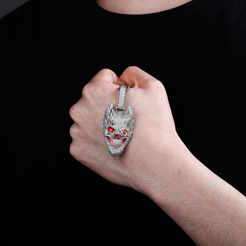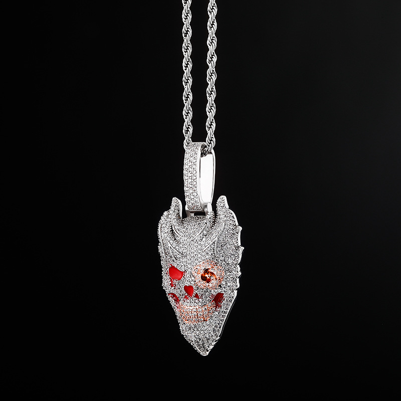 Ins Hot Fire Hell Ghost Full Of Zircon Dripping Oil European And American Hip Hop Pendant Men'S Fashion Accessories