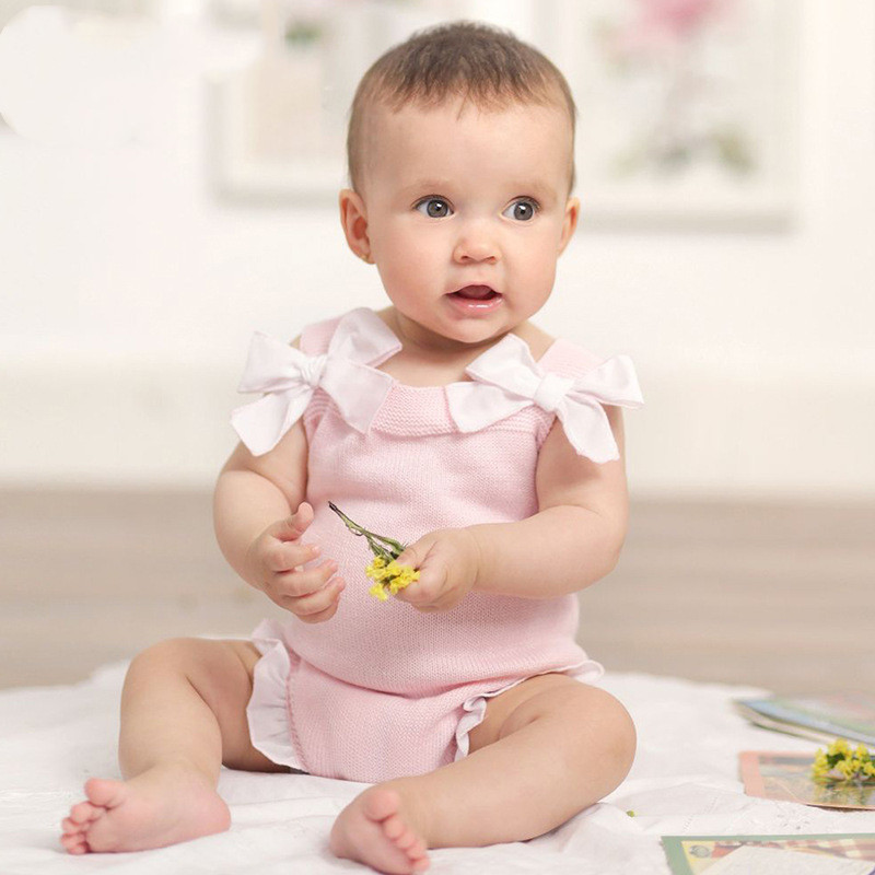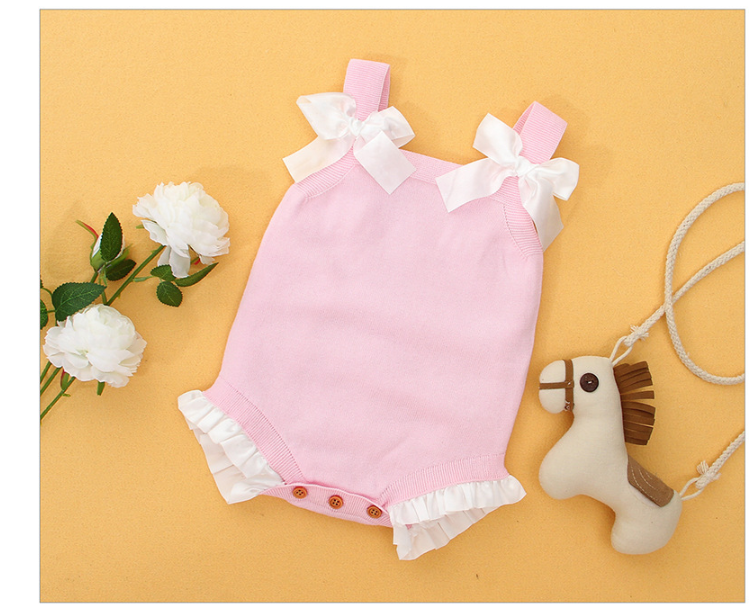Ins Hot Sale Baby Bow Knitted Lace Romper