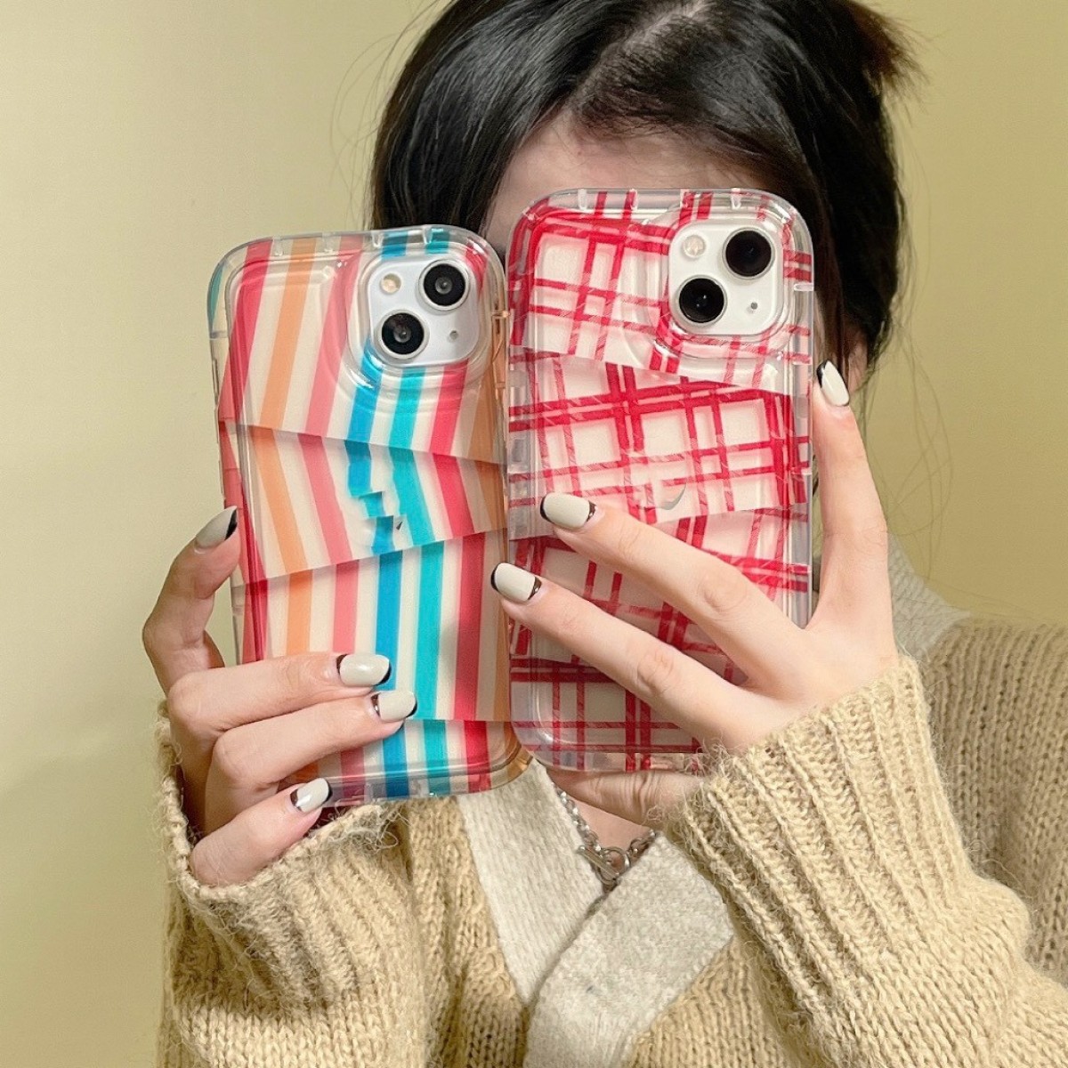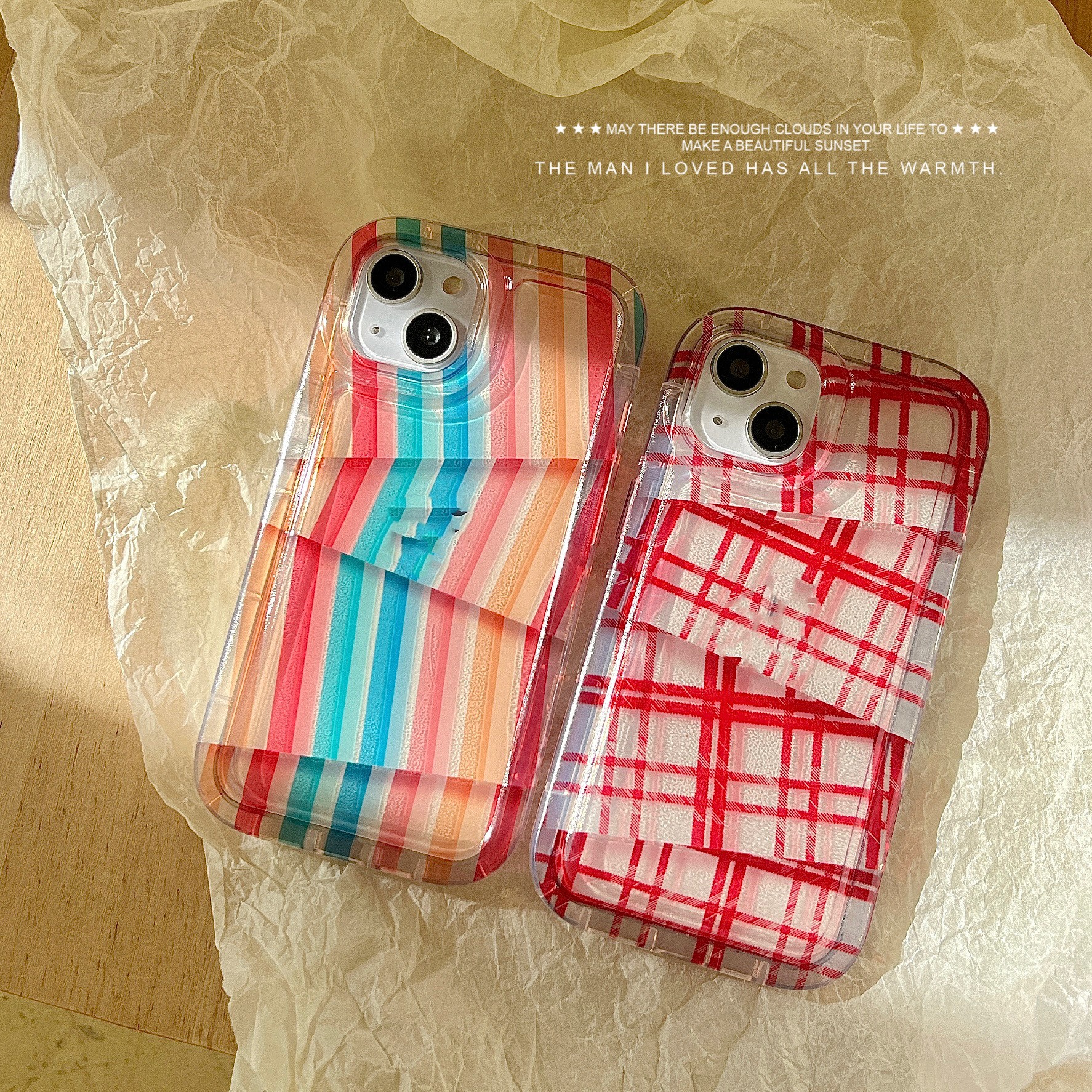 Color: Irregular rainbow stripes, irregular red plaid pattern