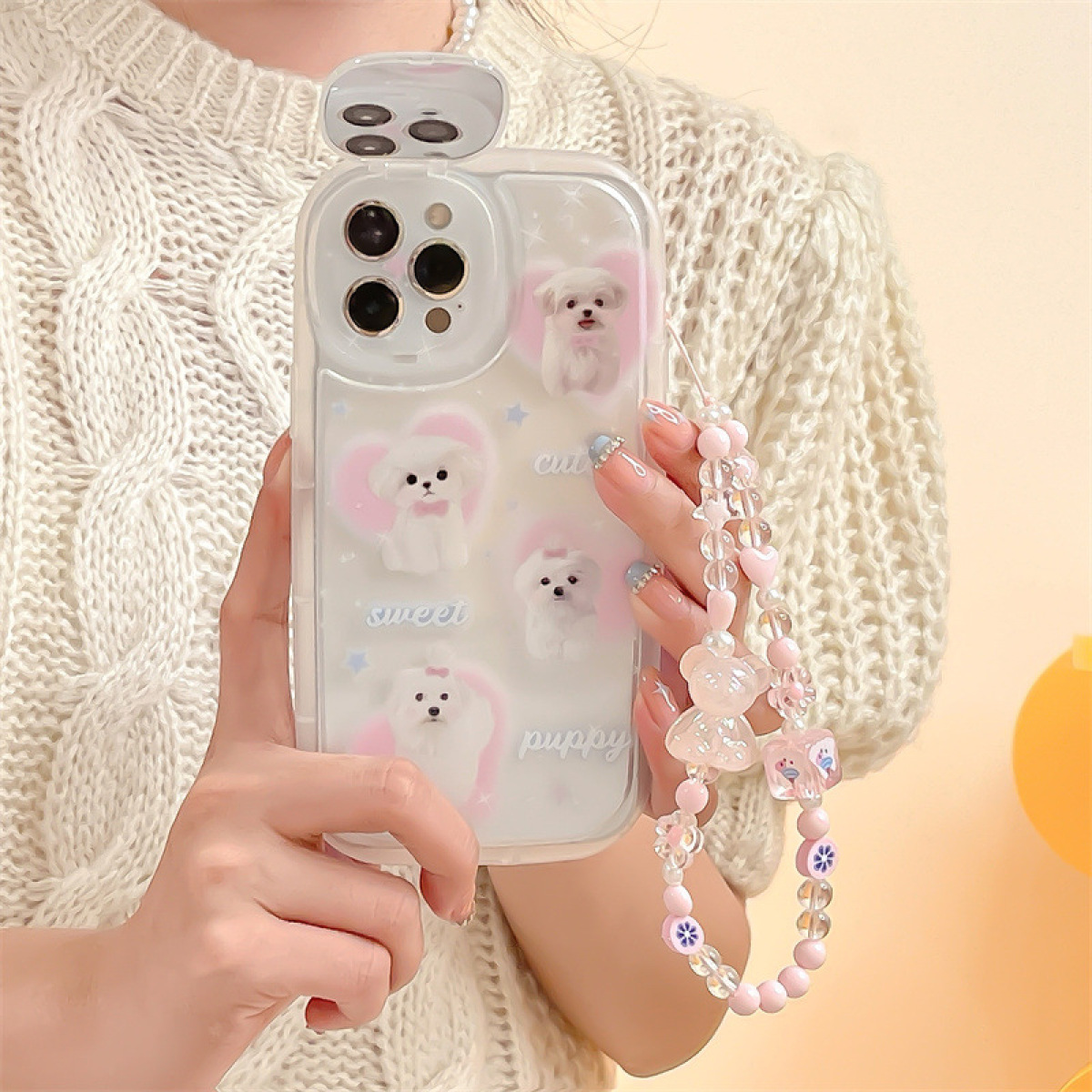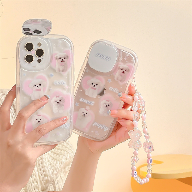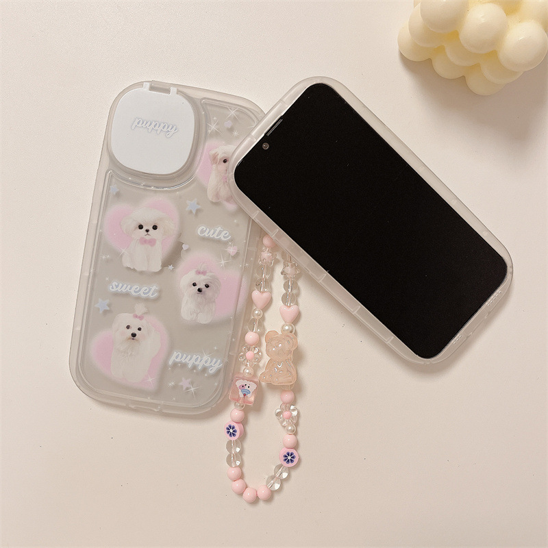Color: cosmetic mirror TPU soft shell cute dog bracket+bracelet CY