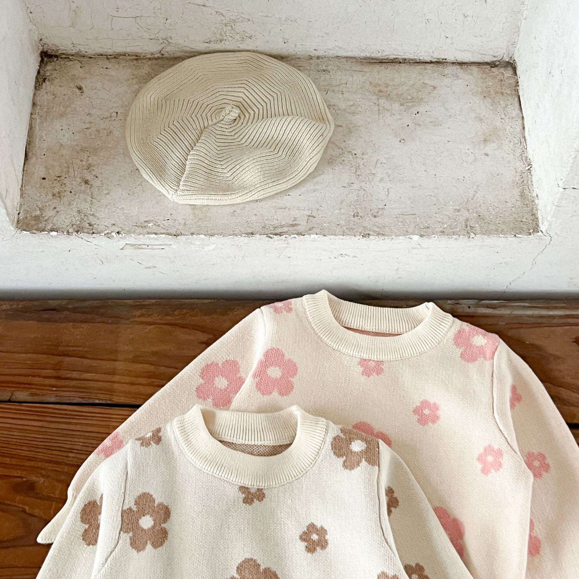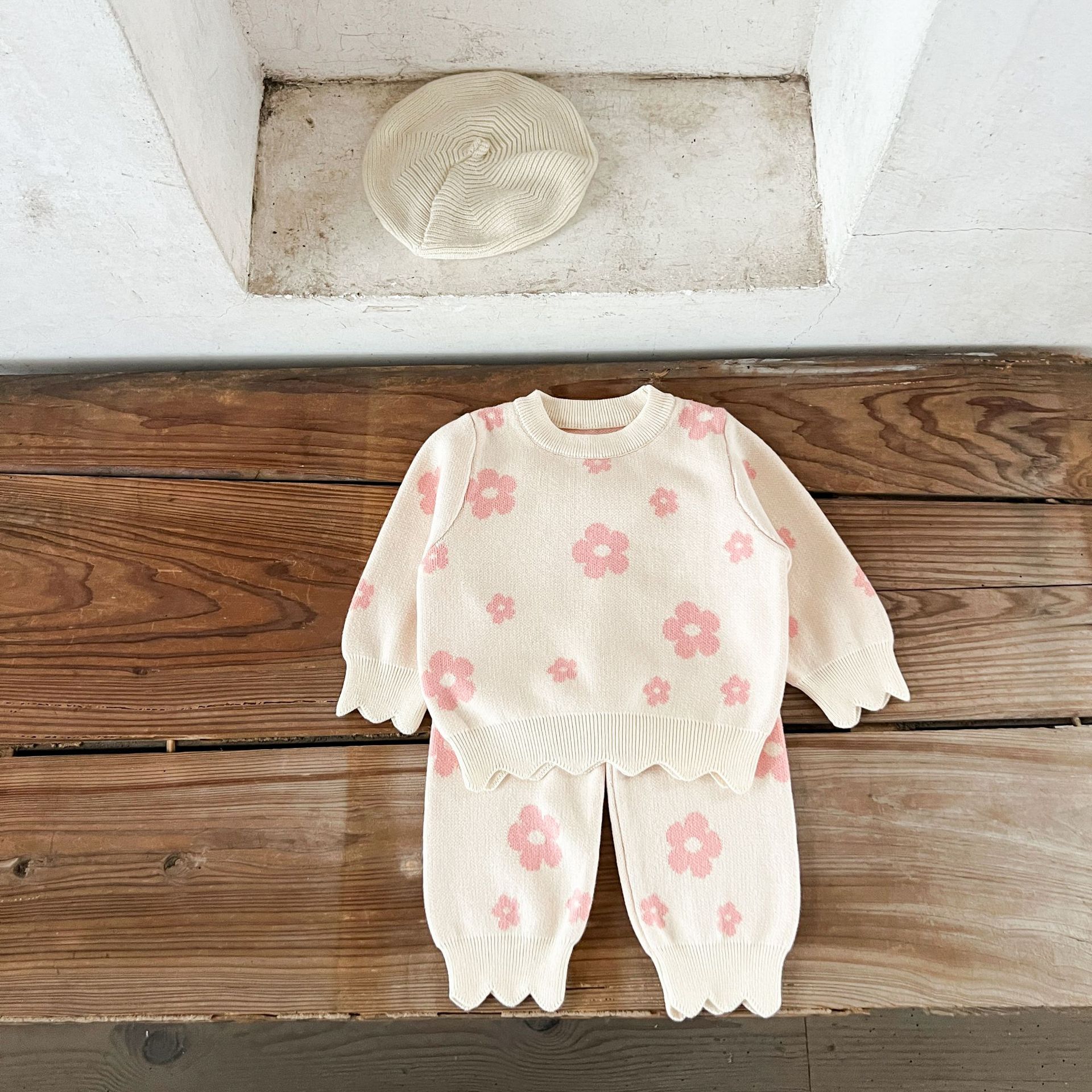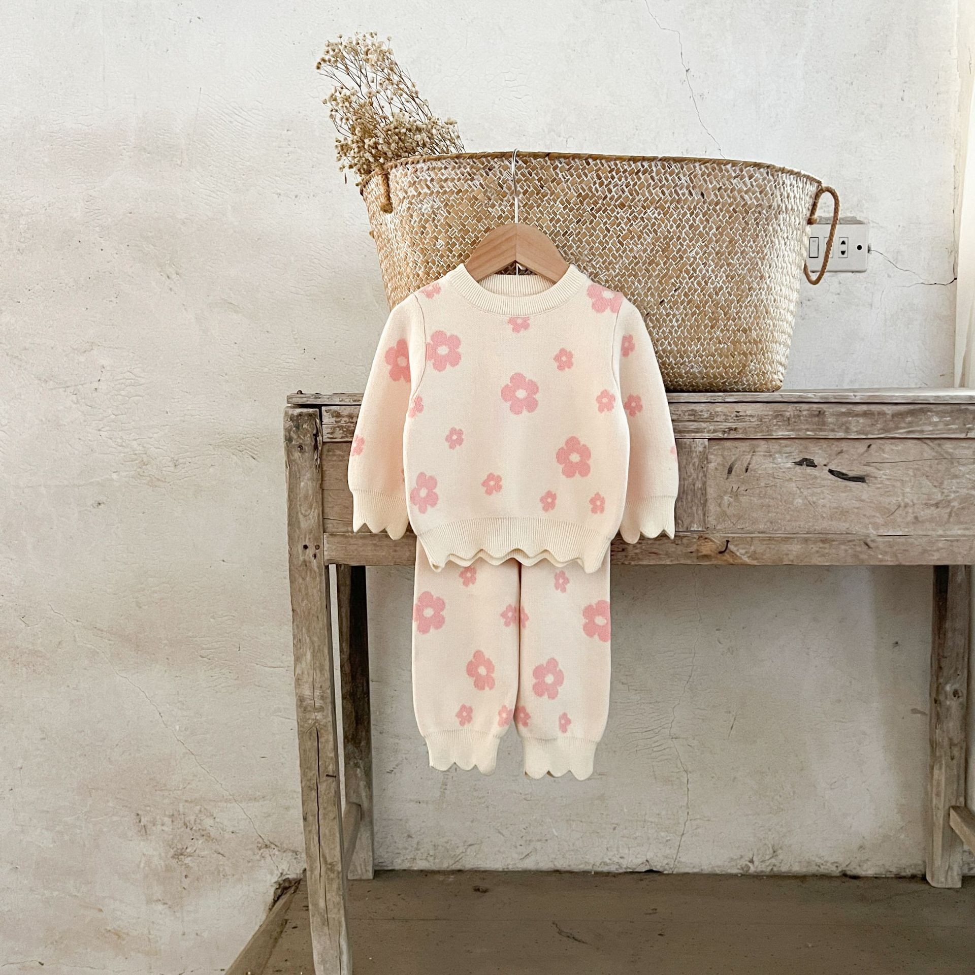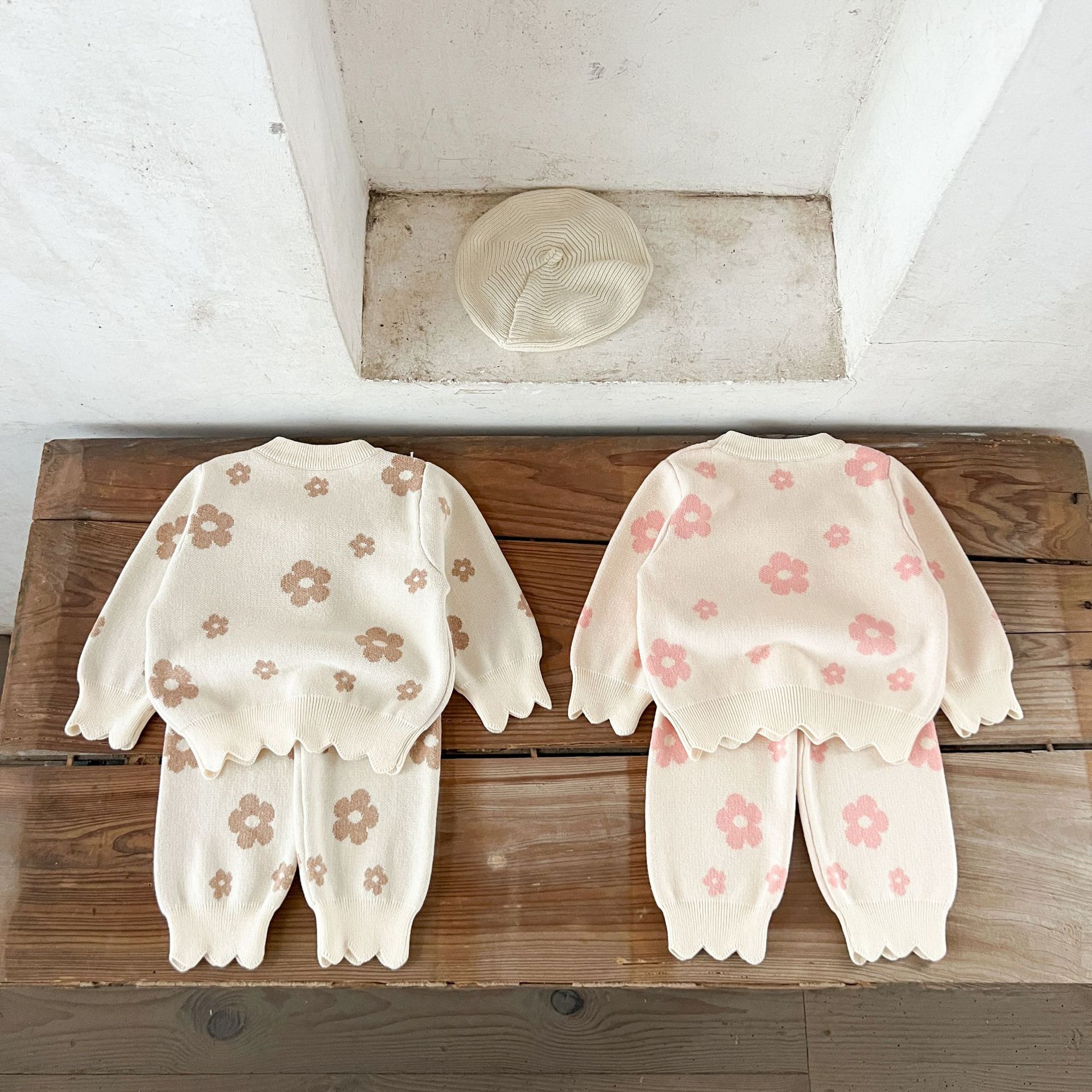 Color: pink flower, khaki flower