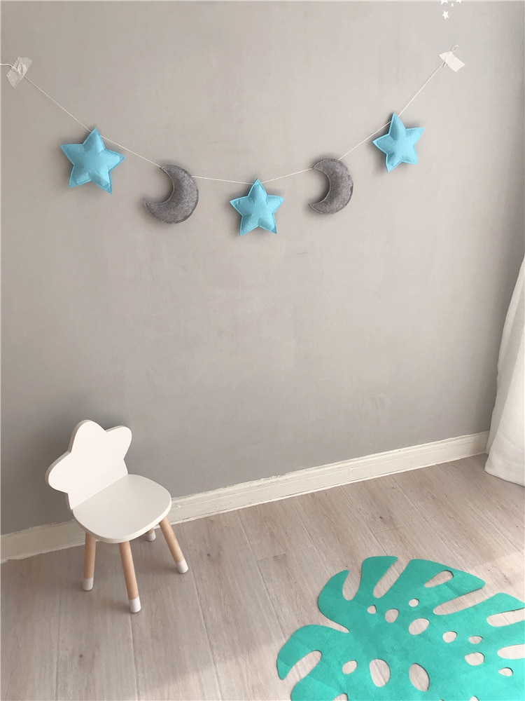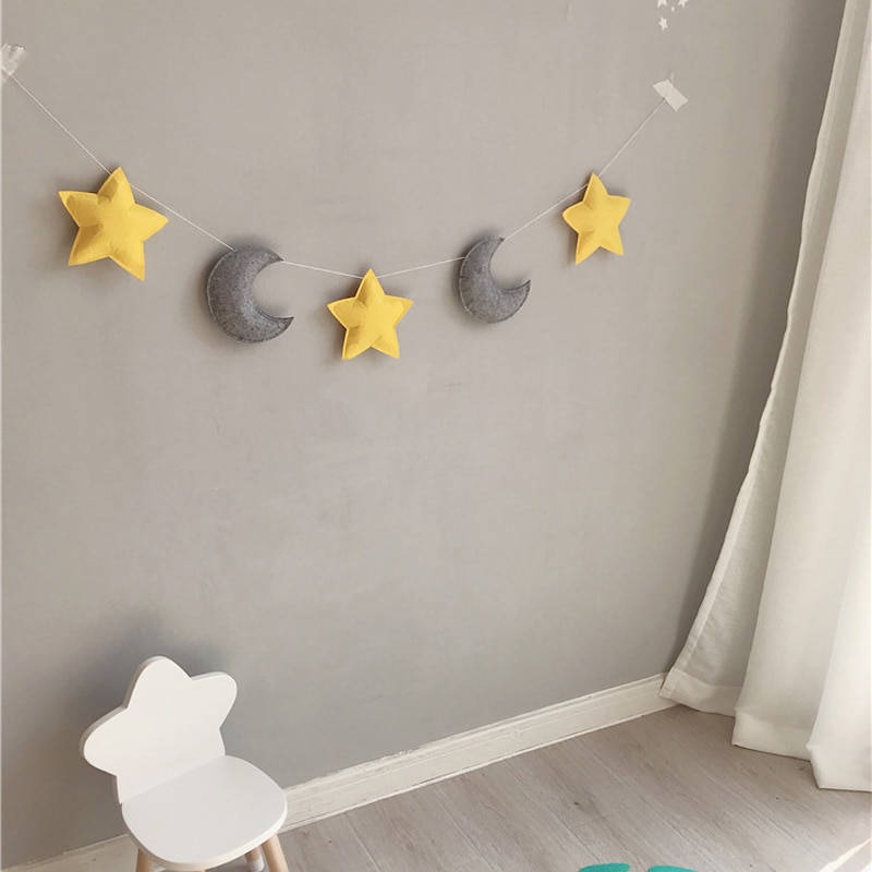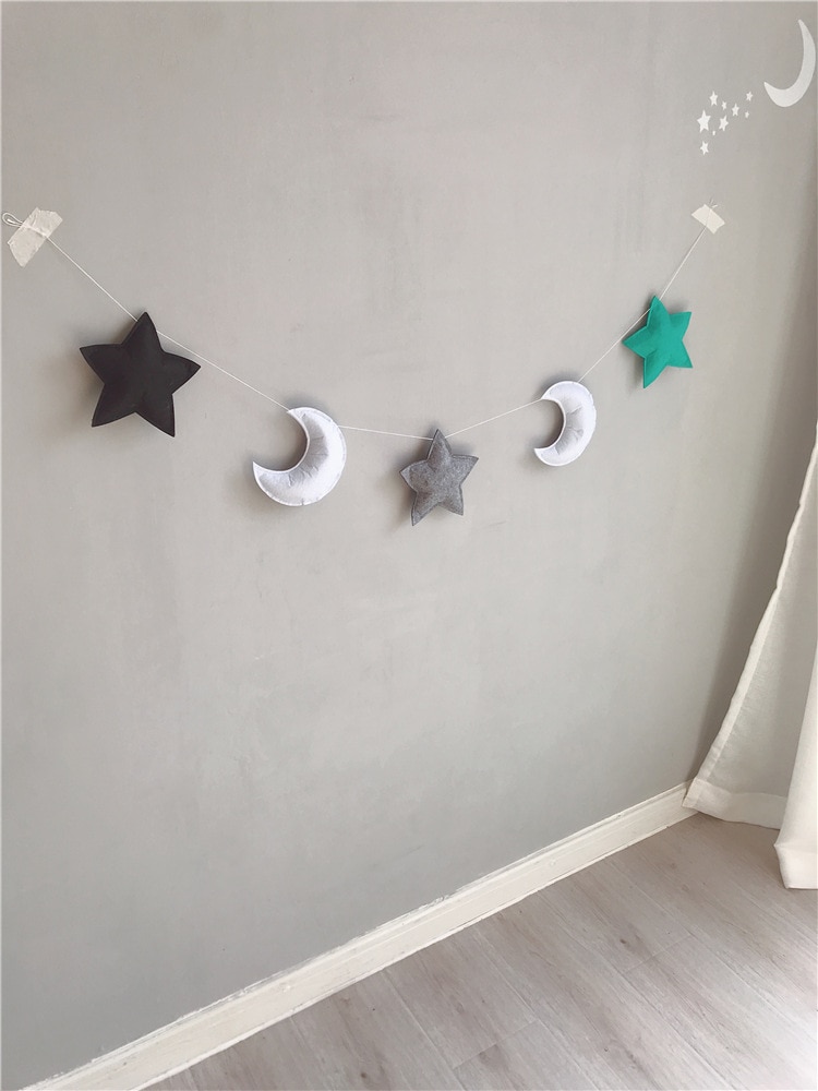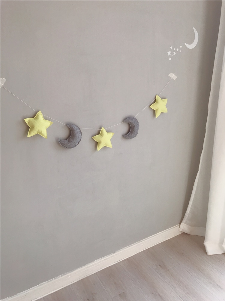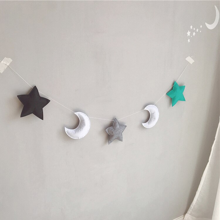 [Name]: Ins Nordic style star moon decoration[Material]: felt + cotton thread[Specifications]: about 1.5 meters