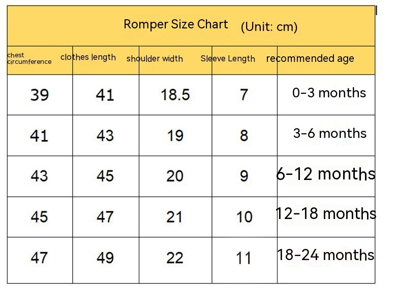 Suitable height: 0-3 months, 3-6 months, 6-12 months, 12-18 months, 18-24 months